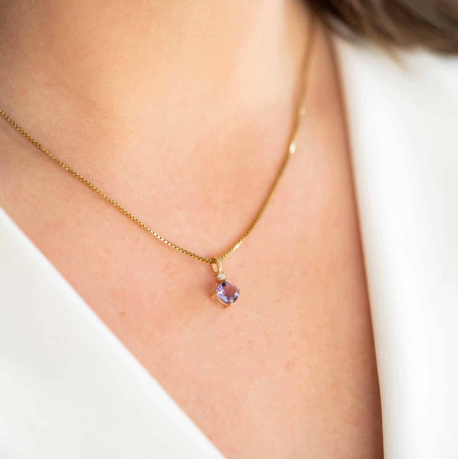 Anheng i gull med ametyst og zirkonia
