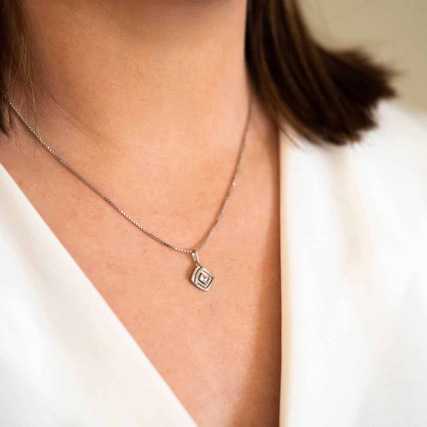 Anheng i hvitt gull med zirkonia