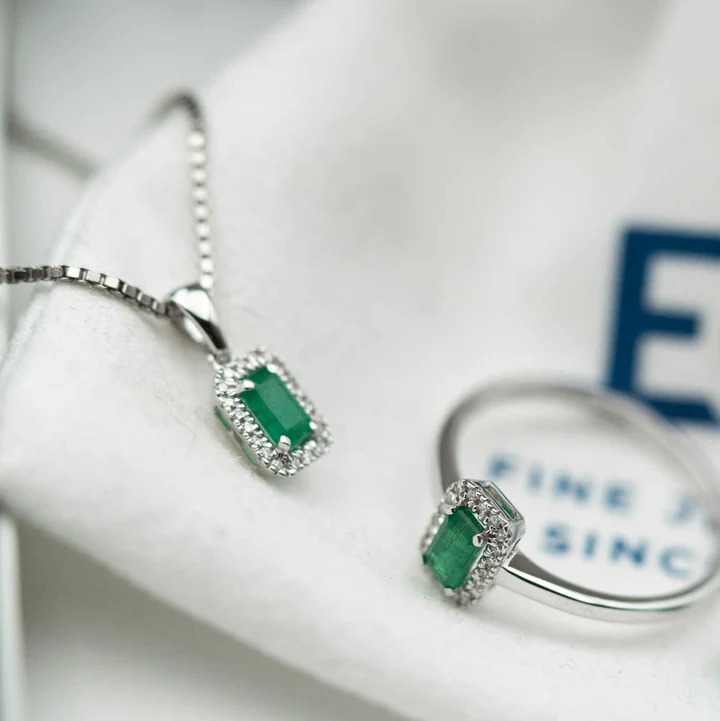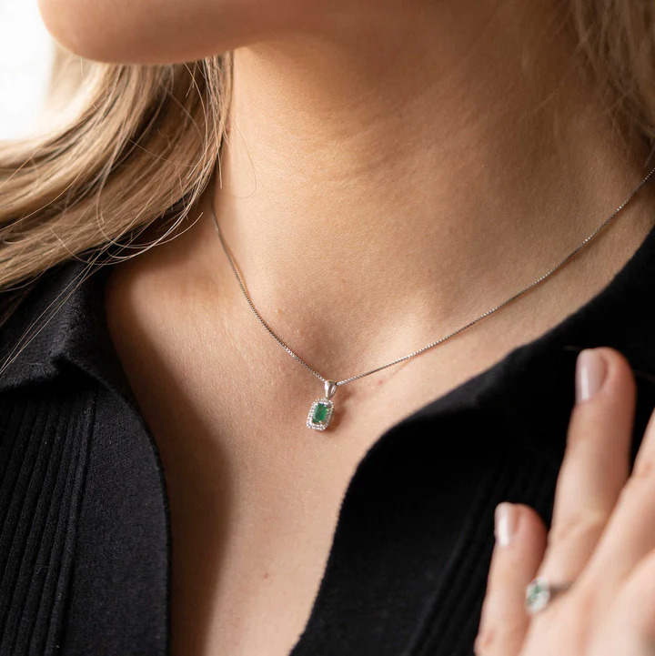 Anheng i hvitt gull med diamant og smaragd 0,05 ct WSI