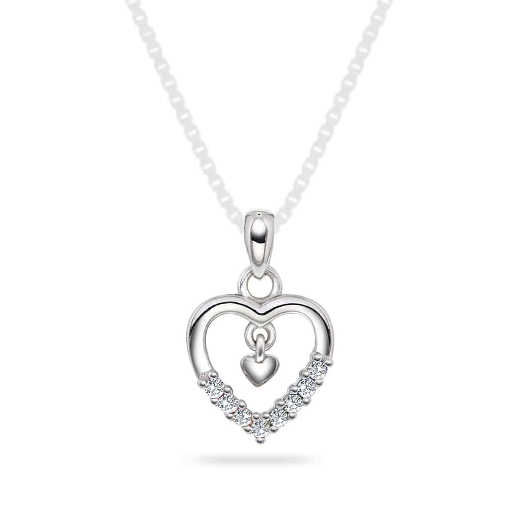 Anheng i sølv med zirkonia og hjerte