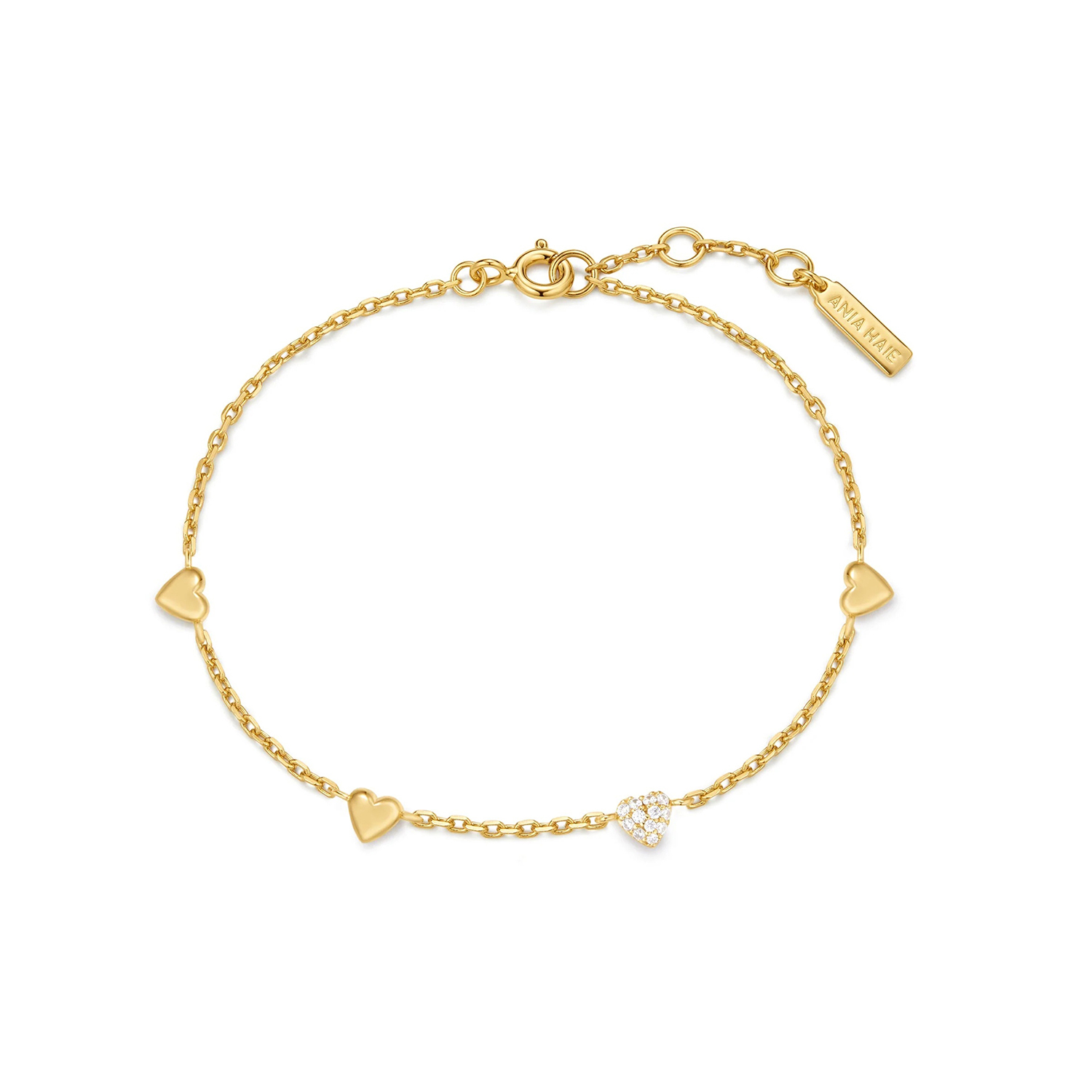 Ania Haie Gold Pavé Puffed Heart Station Bracelet