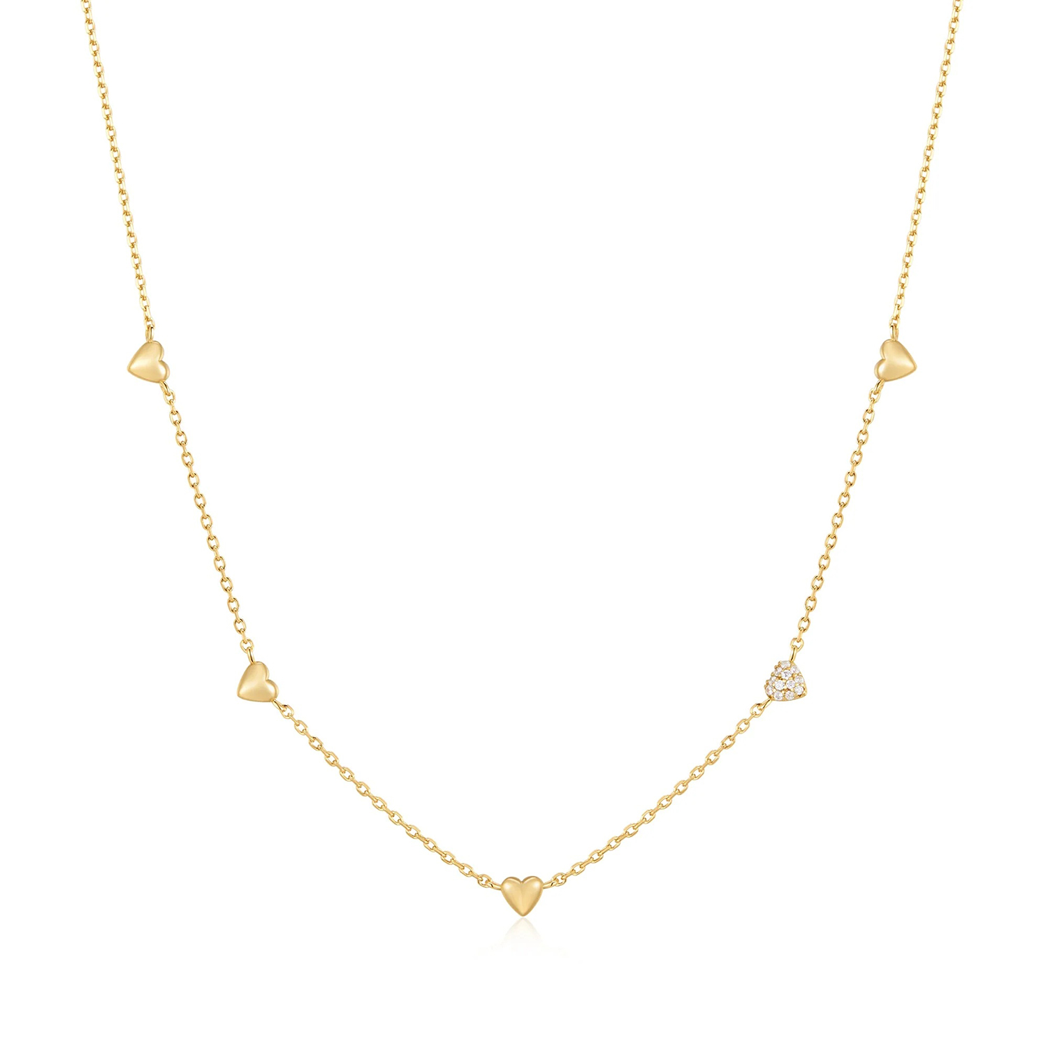 Ania Haie Gold Pavé Puffed Heart Station Necklace