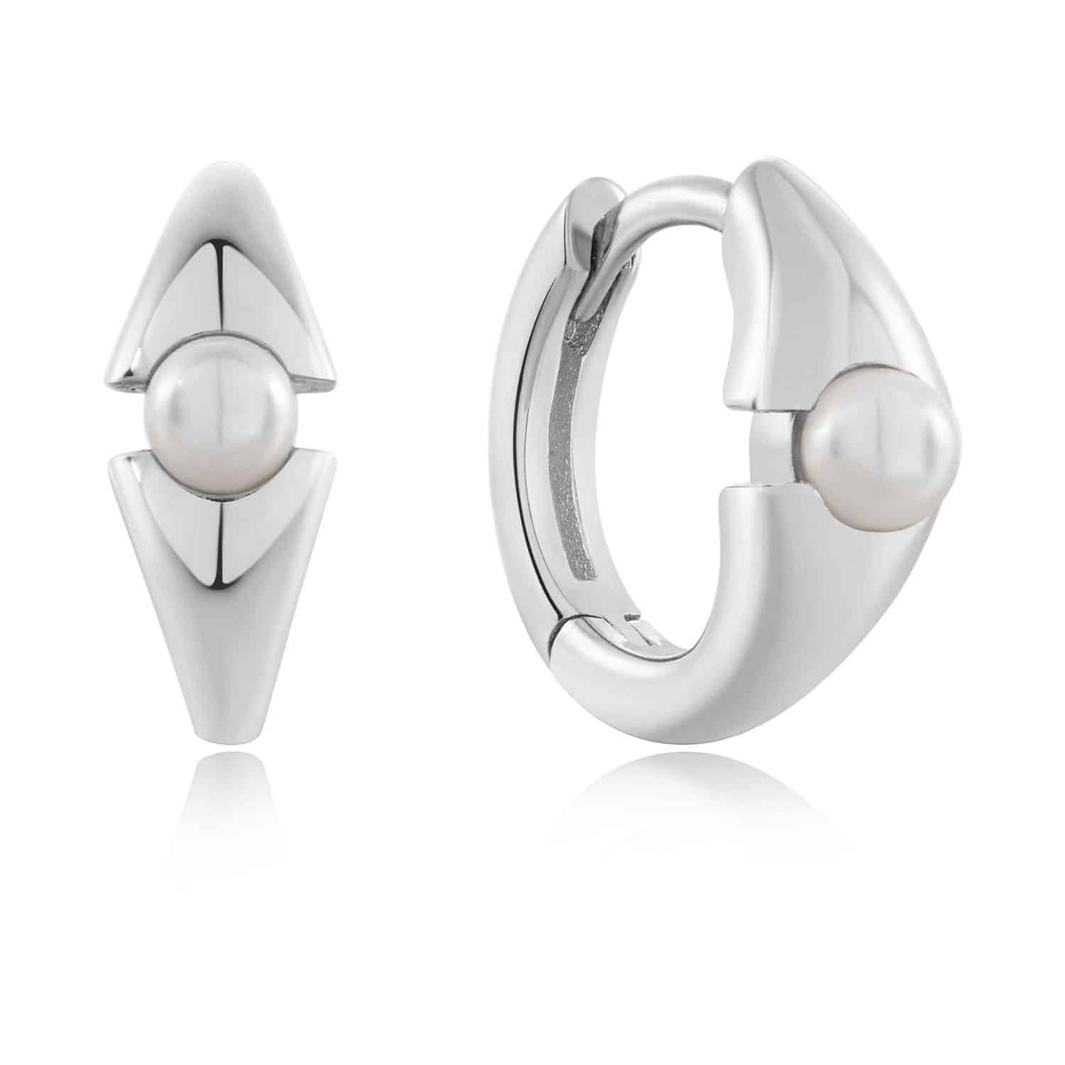 Ania Haie Silver Pearl Geometric Huggie Hoop Earrings
