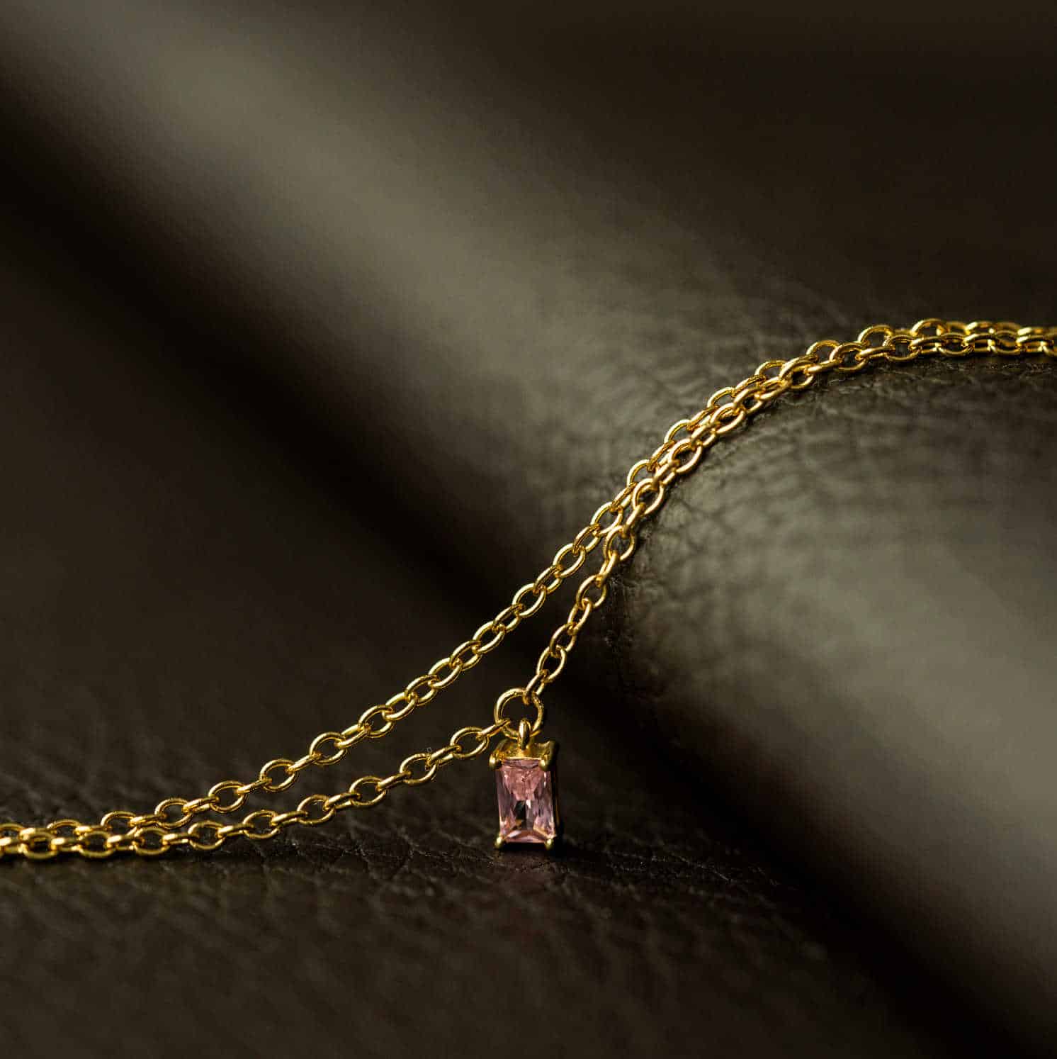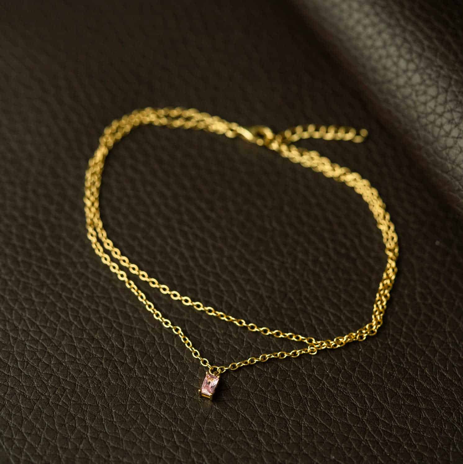 Ankelkjede i sølv med rosa zirkonia 25 cm