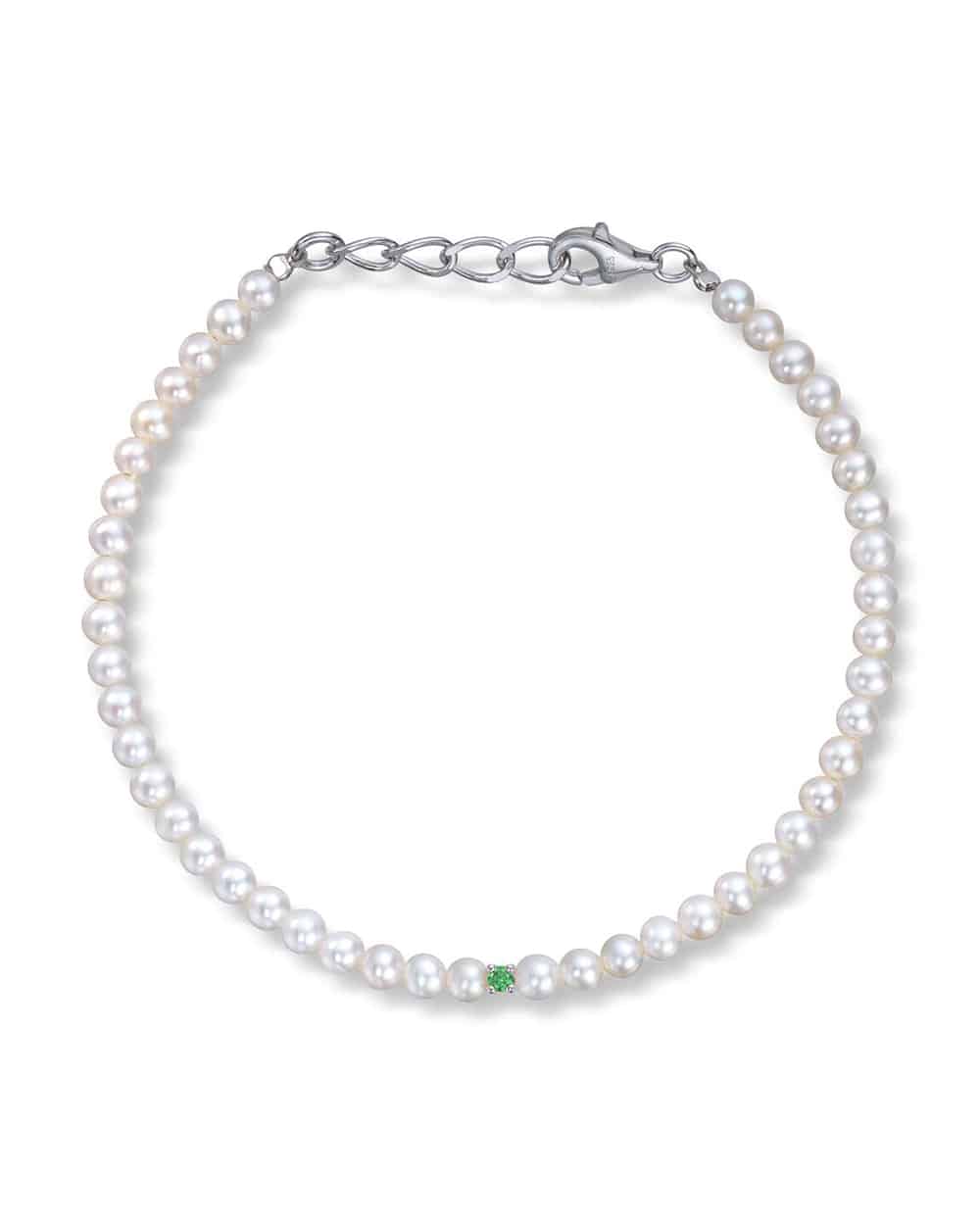 Armbånd i 925S med ferskvannsperler og grønn cirkonia
