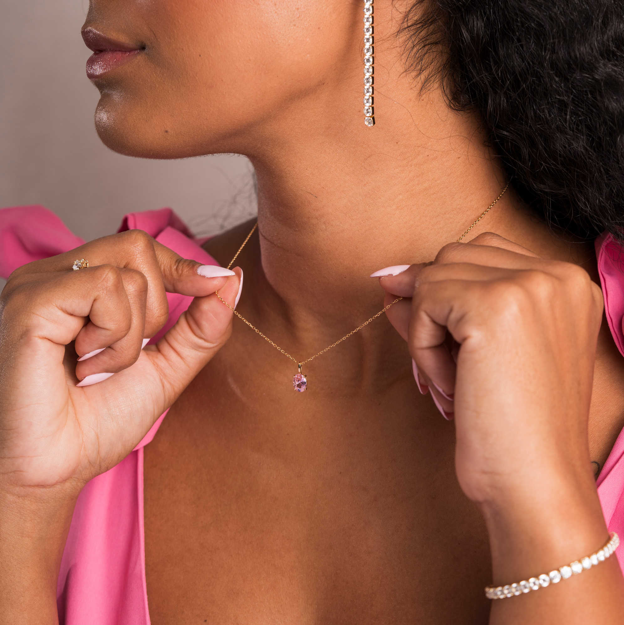 Cara smykke i sølv med rosa zirkonia