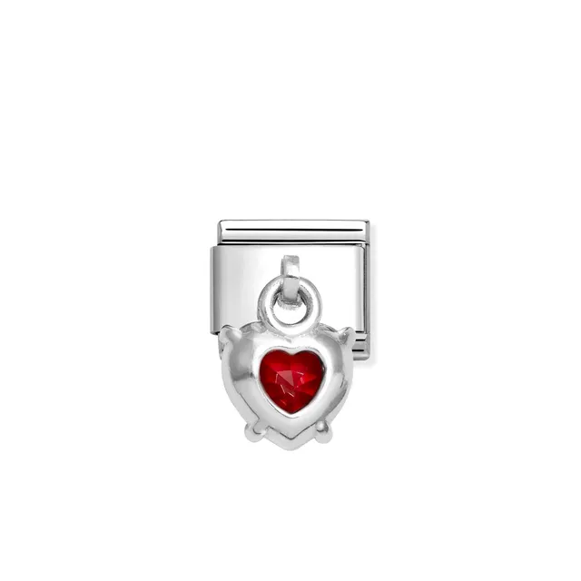 Charm, Composable Link, Pendant Heart Cut Stone, Red