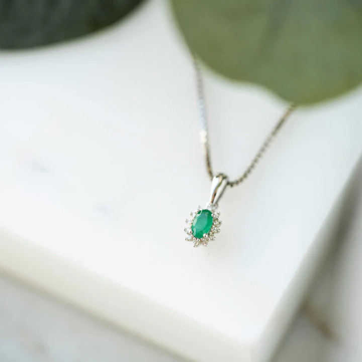 Anheng i hvitt gull med diamant og smaragd 0,04 ct WSI