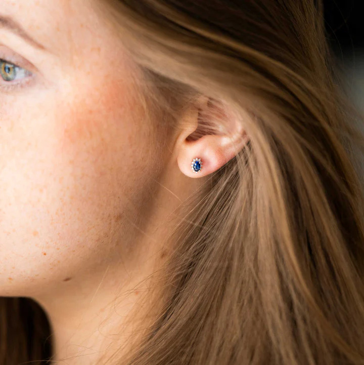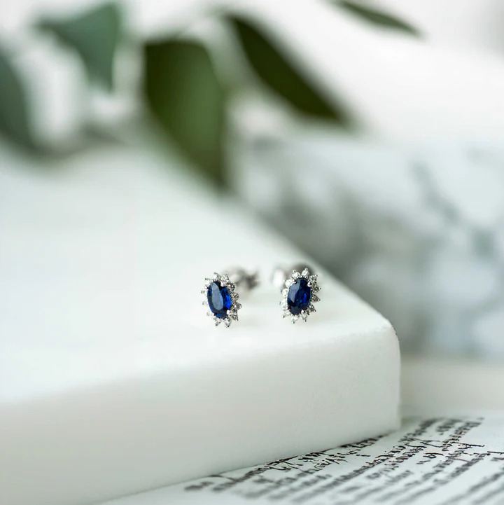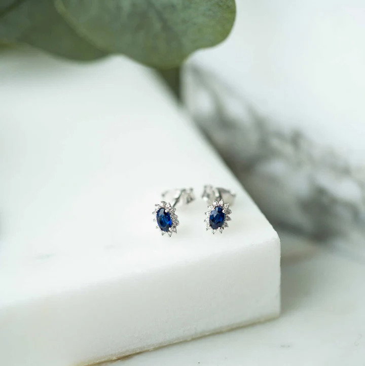 Øredobber i hvitt gull med diamant og safir 0,08 WSI