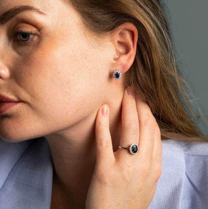 Øredobber i hvitt gull med diamant og safir 0,48 ct TWSI