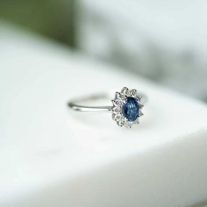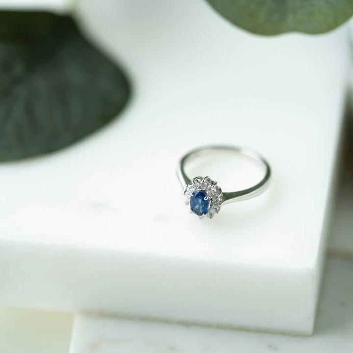 Ring i hvitt gull med diamant og safir 0,24 ct TWSI