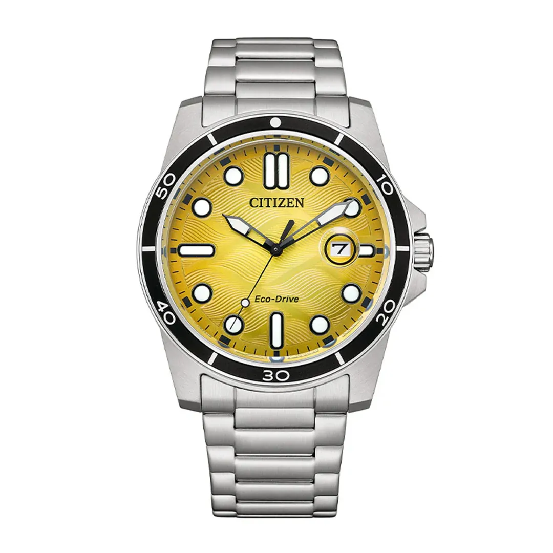 Sporty Marine fra Citizen er en robust og pålitelig herreklokke som kombinerer funksjonalitet med sporty design. Dette er en klokke som er laget for å tåle forhold og samtidig se stilig ut. Modellen kommer med en flott gul urskive, datovisning med forstørrelsesglass og mange flotte detaljer. Klokken kan brukes til vannsport som svømming, men er ikke ideelt for dypdykking. Klokken er perfekt for den aktive mannen som trenger en pålitelig klokke til både sport og hverdag.