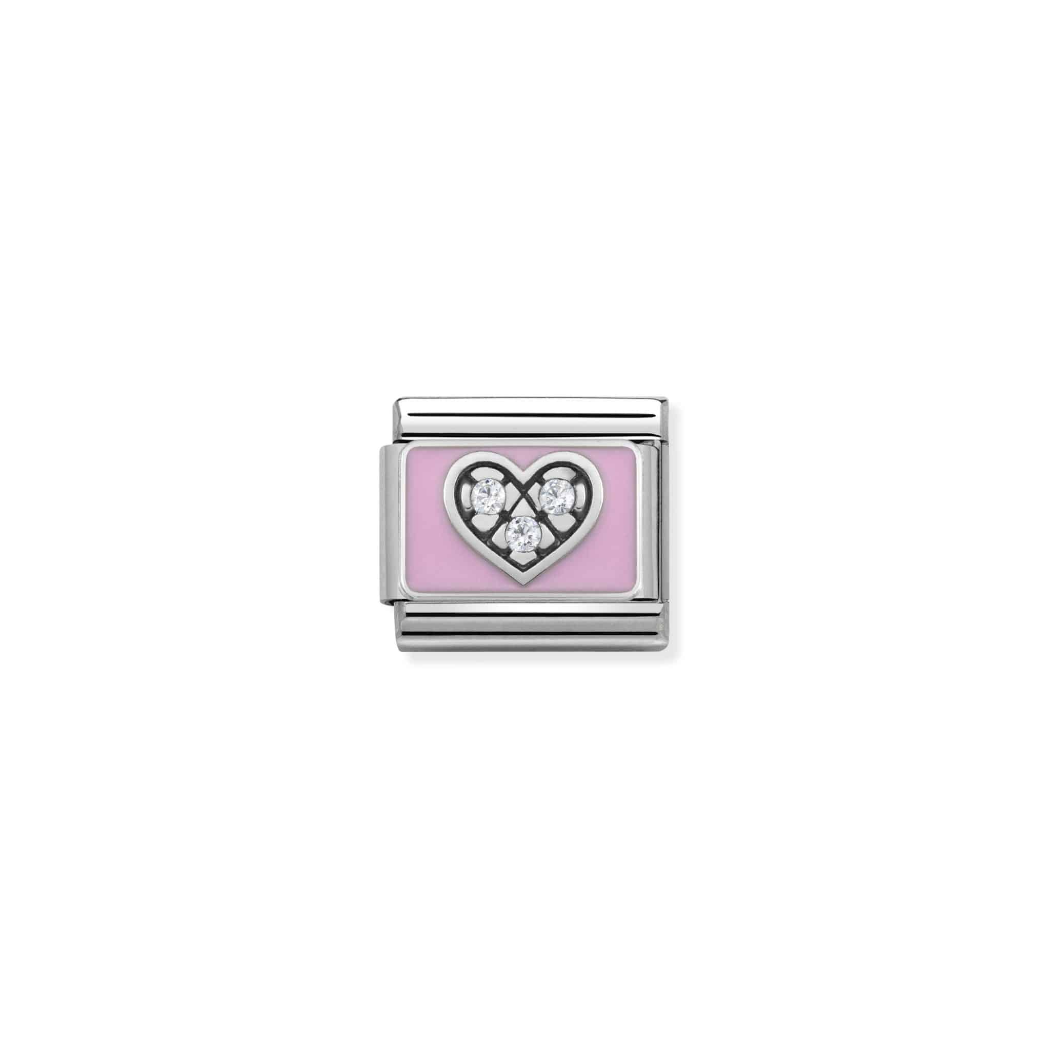 Composable CL SIMBOLS stainless steel, enamel, Cub. Zirc and 925 sterling silver CZ Heart Pink