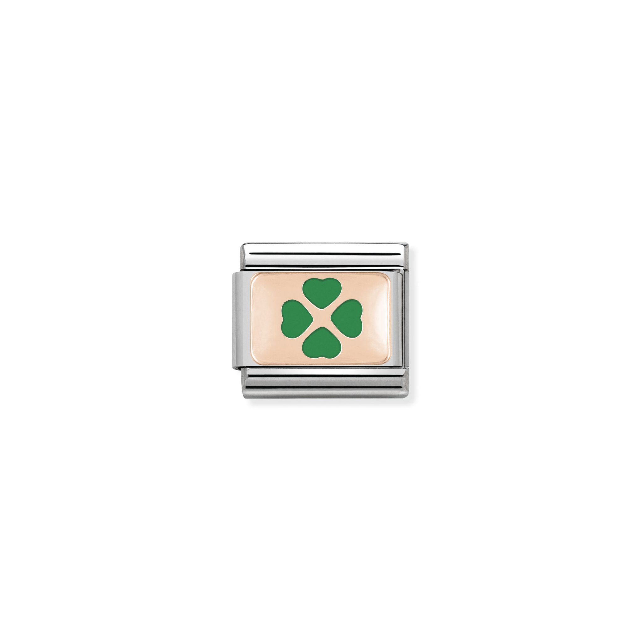 Composable Classic PLATES in stainless steel with 9k rose gold and enamel Green Four-Leaf Clover