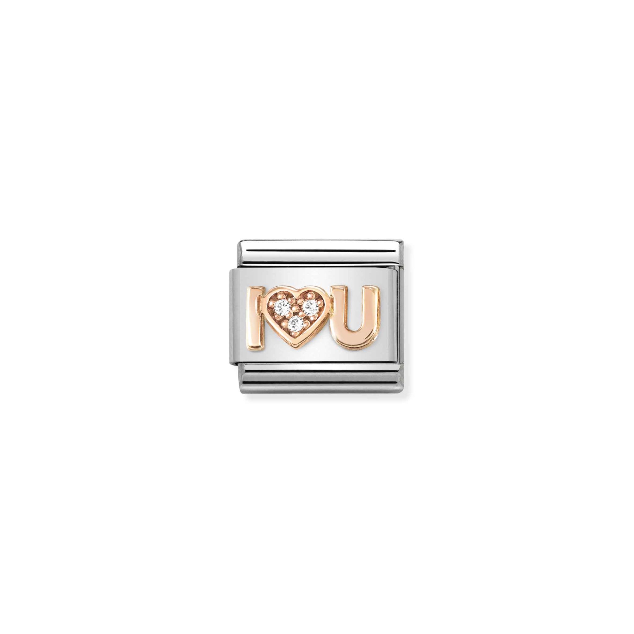 Composable Classic Symbols in stainless steel with 9k rose gold and CZ I Heart You