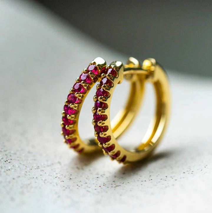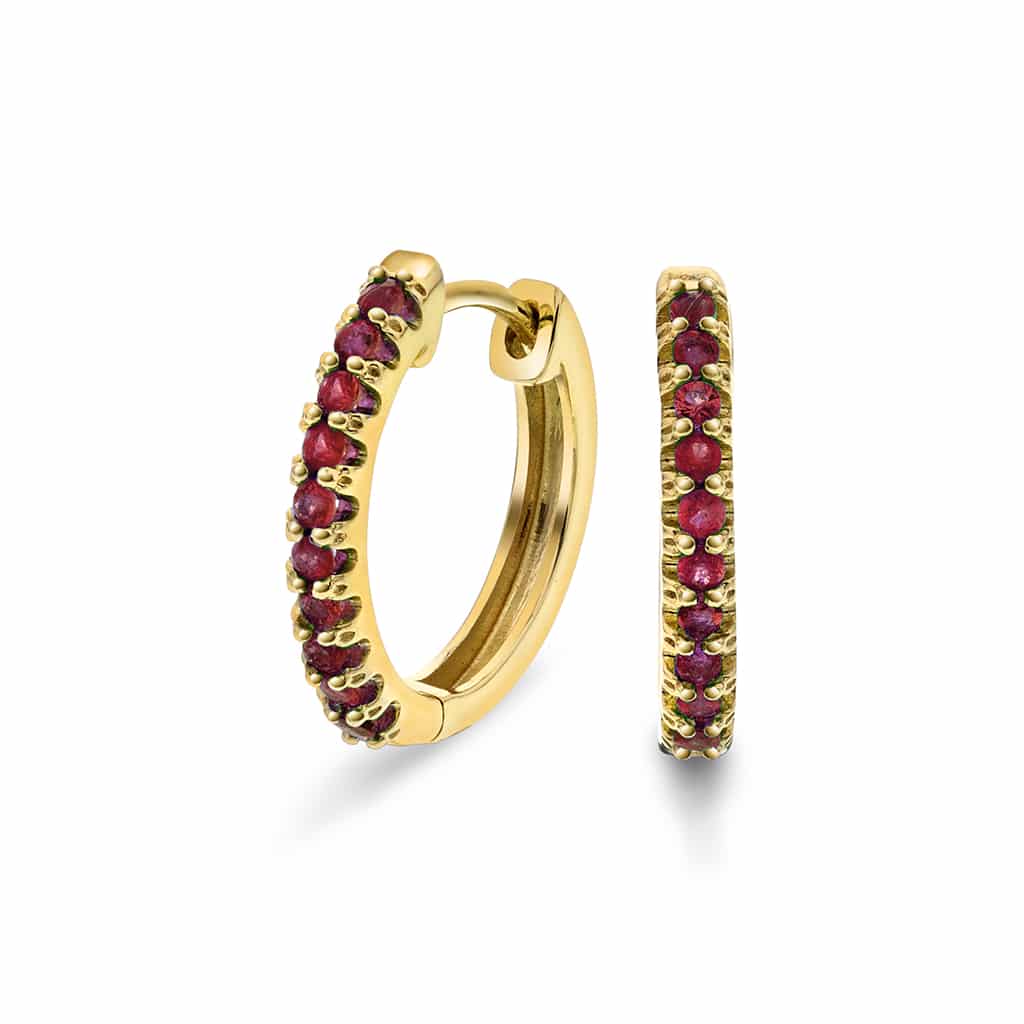 Øreringer i gult gull med rubin