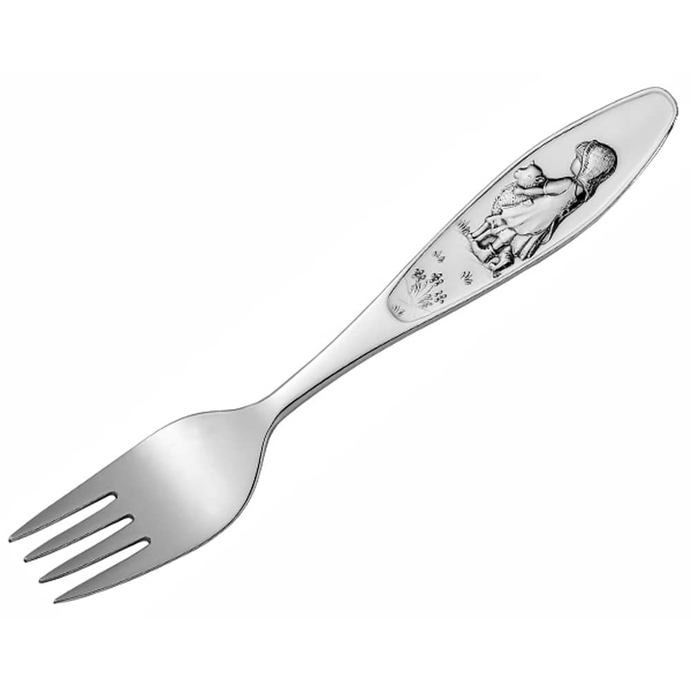 Barnegaffel i den fineste sølv, med motiv inspirert av den koselige barnesangen, Bæ bæ lille lam.