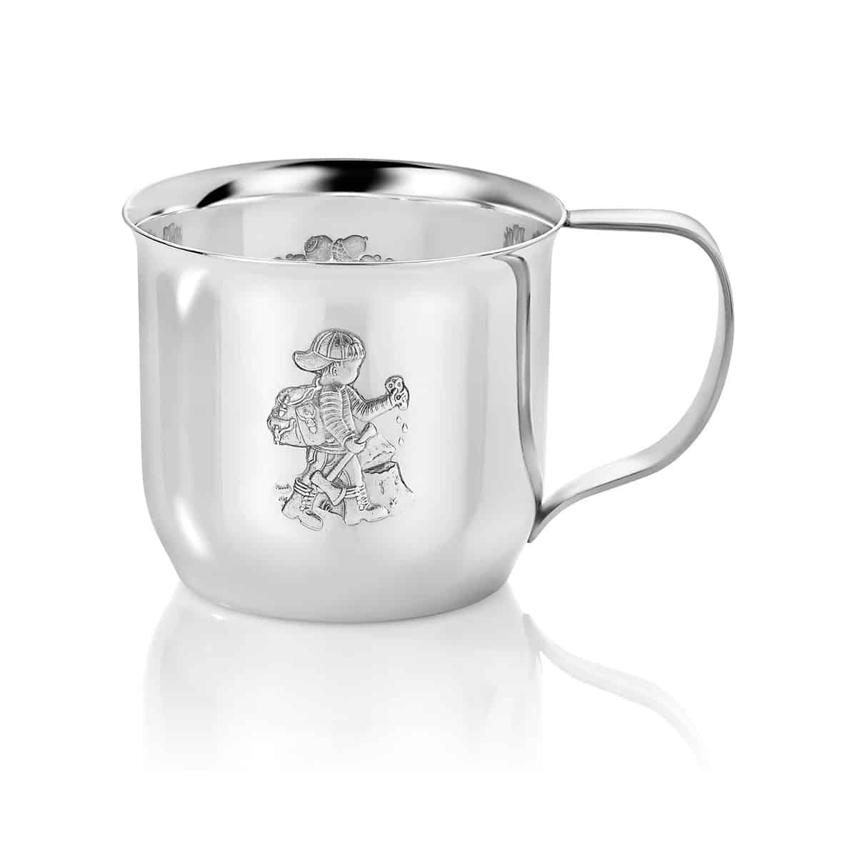 Sølvkrus i den fineste sølv, med motiv fra eventyret om Espen Askeladd som kappåt med trollet. Flott dåpsgave, gjerne med gravering.