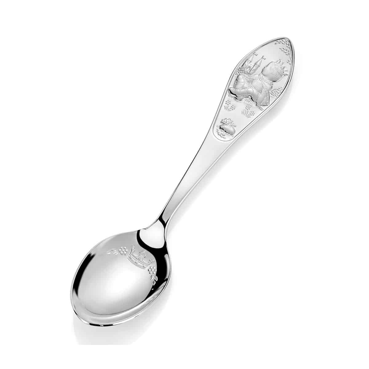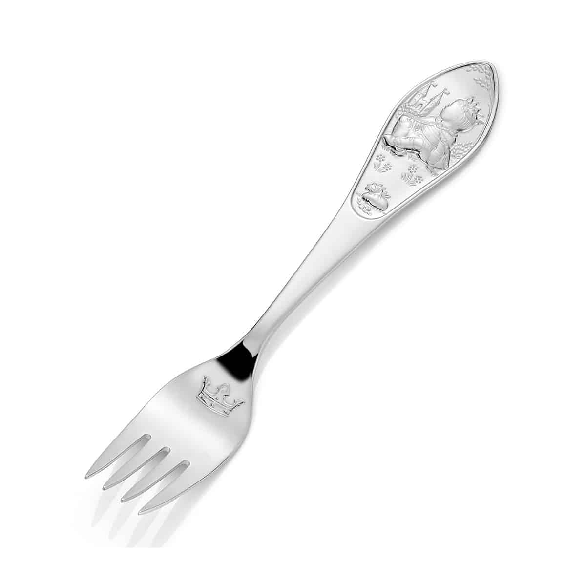 Gaveeske med skje og gaffel i den fineste sølv til små prinser. Med gravering av navn og dato blir dette en minnerikgave fra dåpen eller navnefesten.