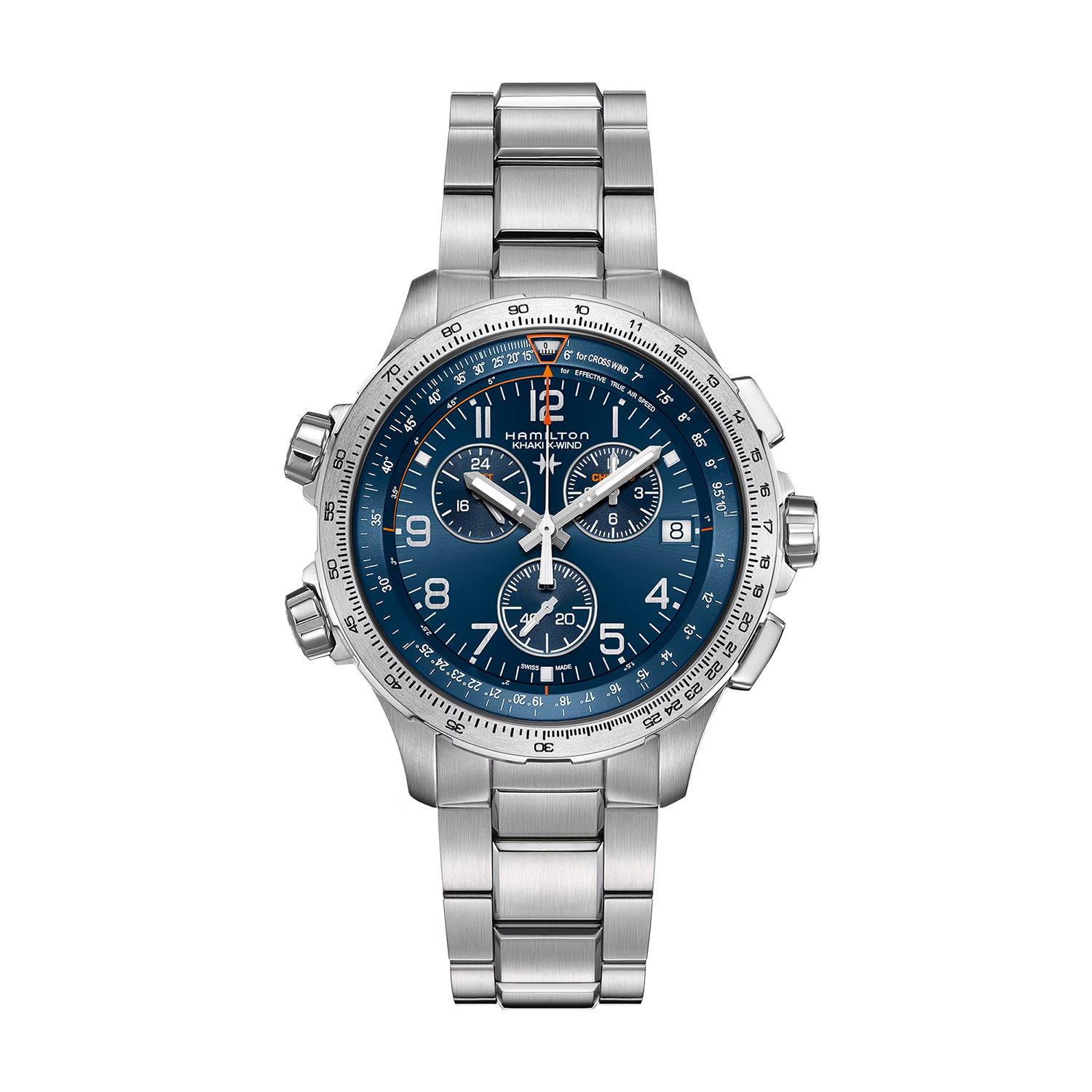 | Funksjoner | Chronograph, Dato, GMT/Sekundær tidssone, Sidevindskalkulator |