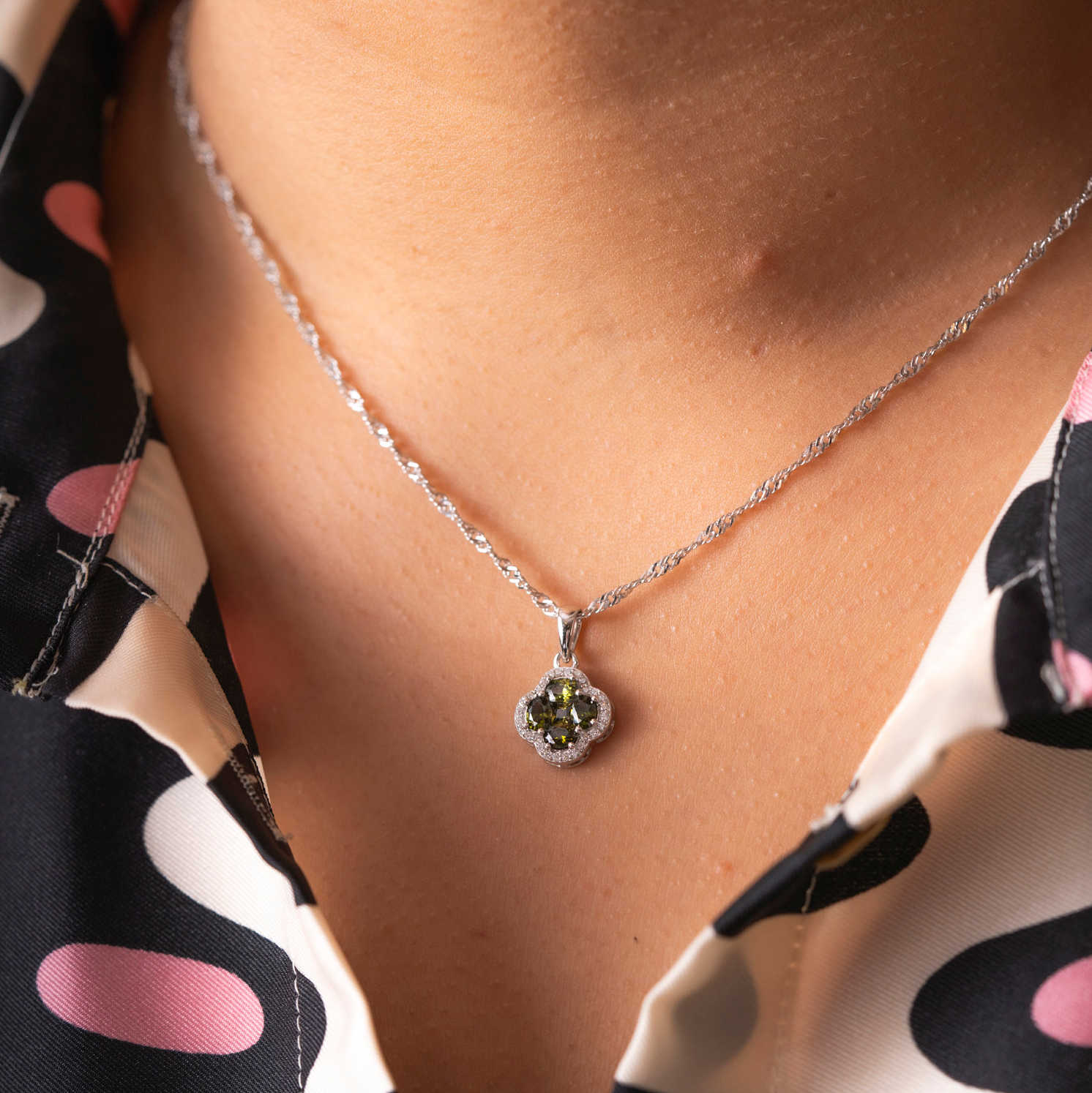 Ivy smykke i 925 rhodinert sølv med oliv