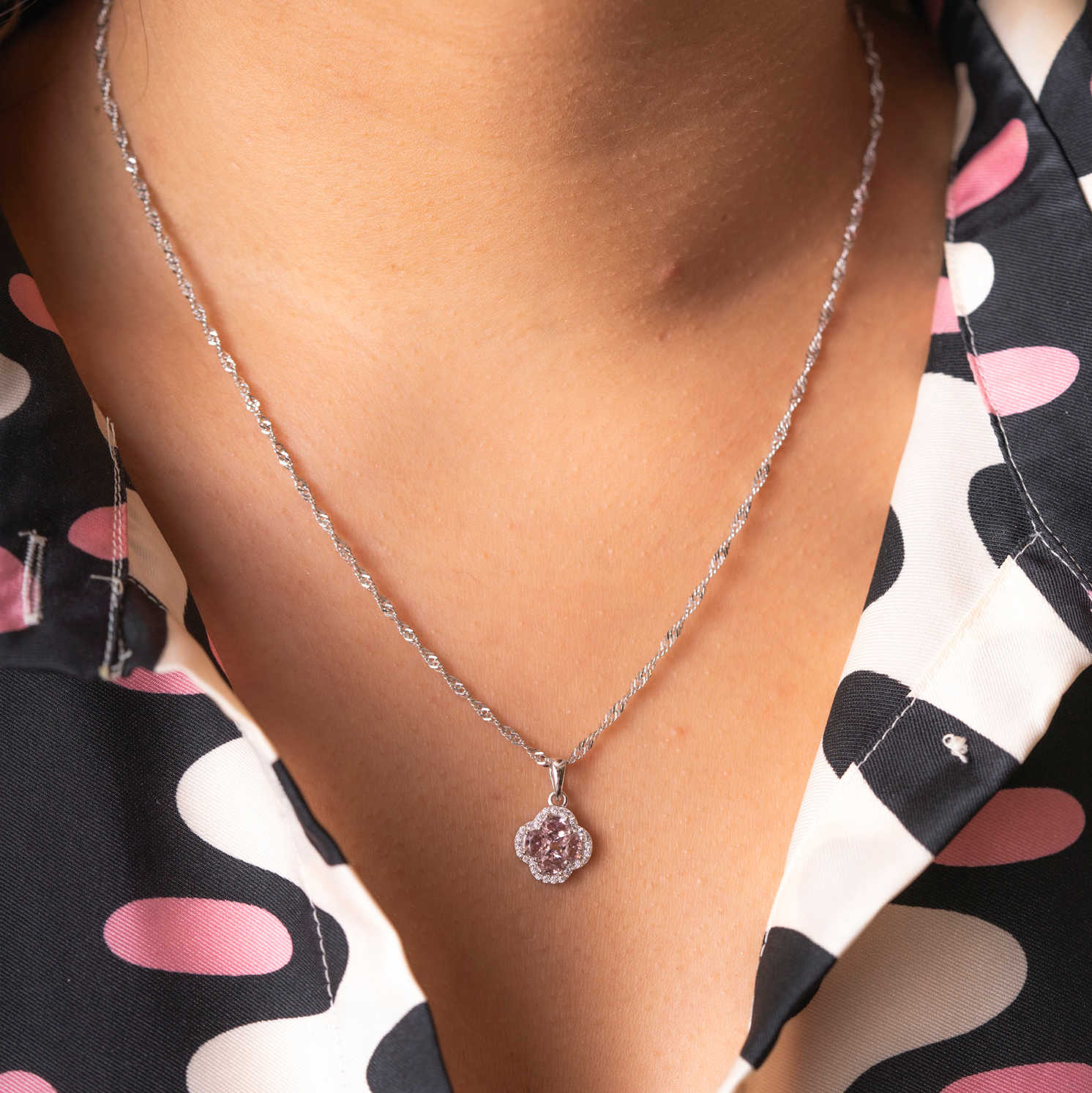 Ivy smykke i 925 rhodinert sølv med rosa