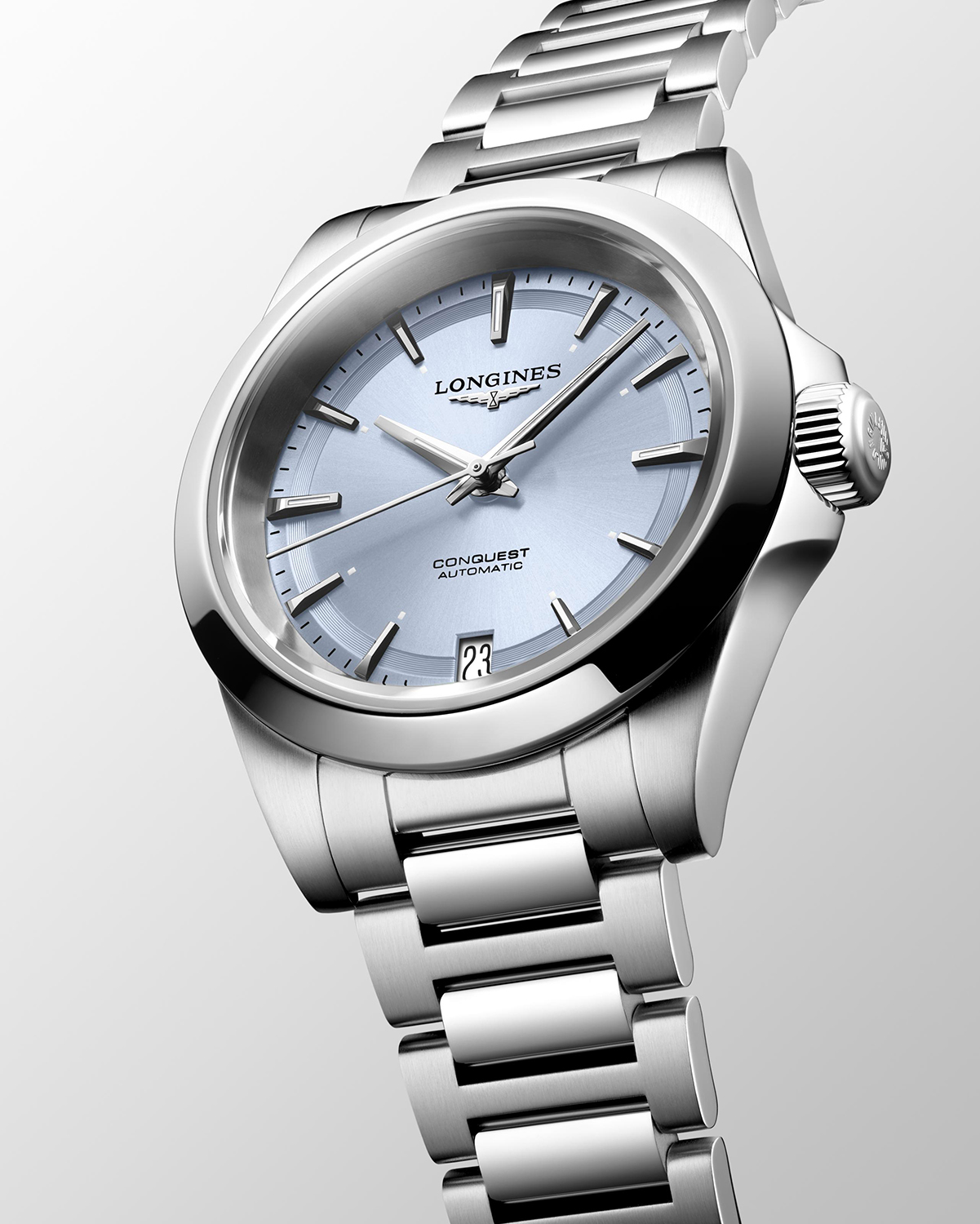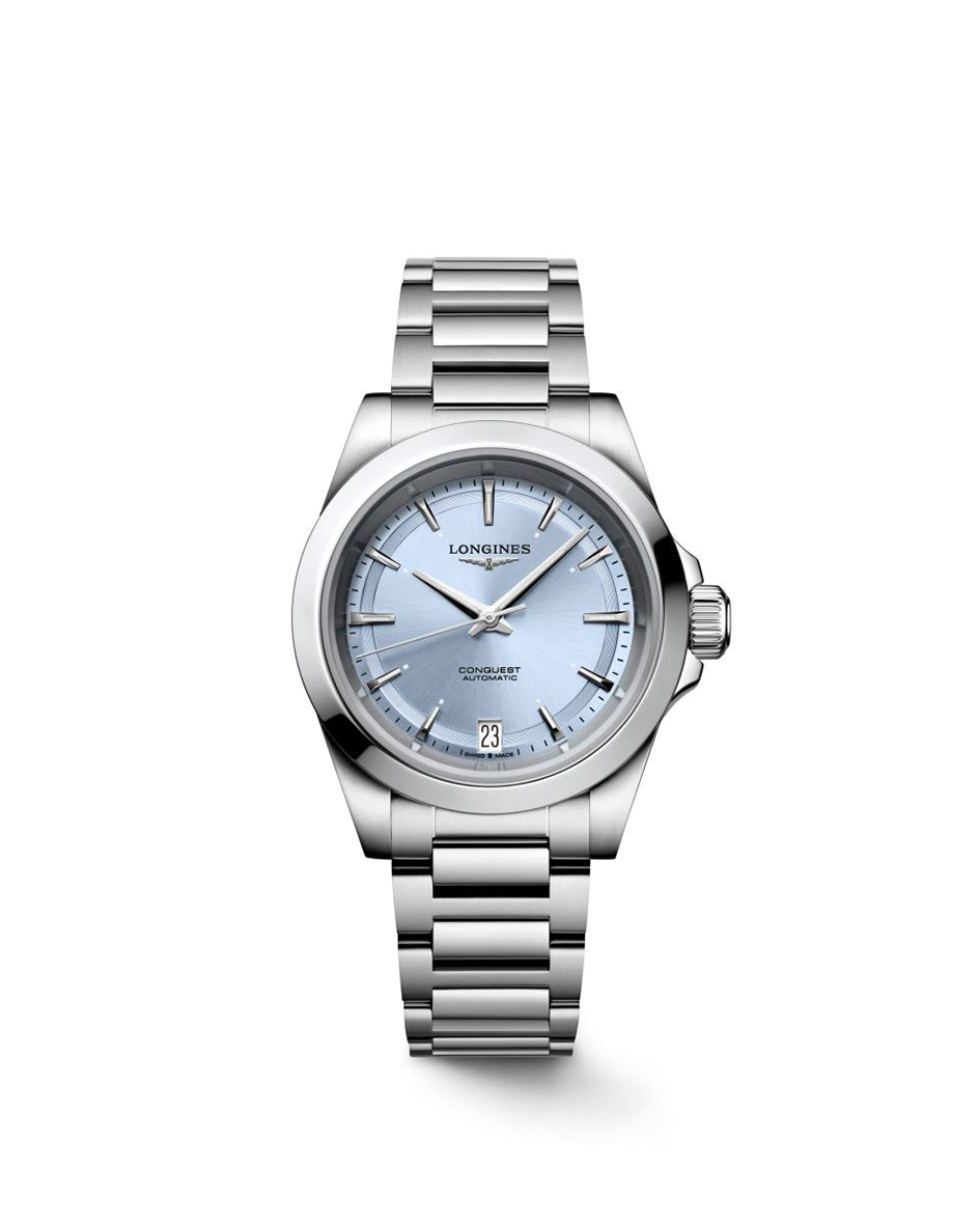 Longines Conquest er en tidløs klokke som kombinerer klassisk design med moderne teknologi. Denne modellen er kjent for å være robust og stilren. Conquest-serien kommer i flere størrelser, men denne modellen har en 34 mm kasse, er laget av rustfritt stål og har en blå urskive. Conquest serien er utstyrt med tydelige time- og minuttmarkører samt en datovisning ved klokken seks-posisjonen. Klokken har ripebestandig safirglass og er vanntett opp til 100 meter, noe som gjør den perfekt for både hverdagsbruk og mer aktive situasjoner. Klokken er utstyrt med et pålitelig automatisk urverk som sikrer presis tidsmåling og langvarig ytelse.