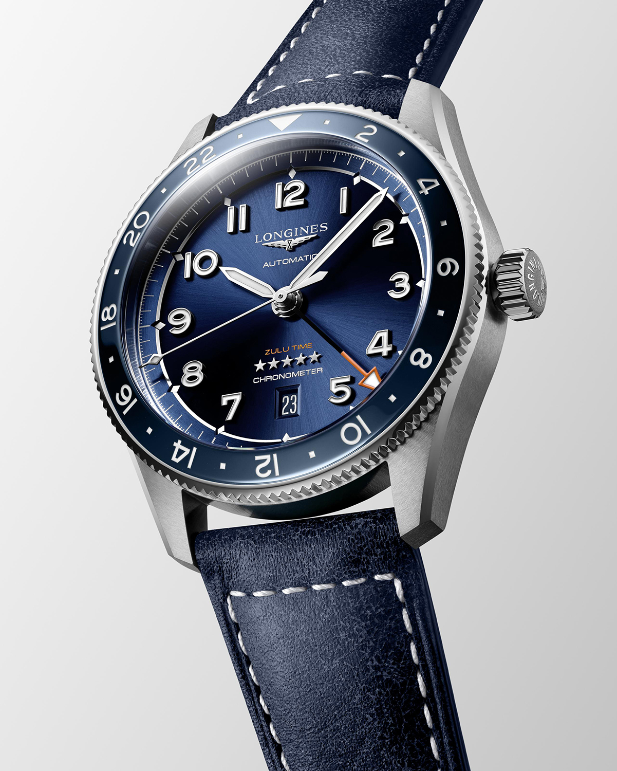 Longines Spirit Zulu Time er en hyllest til de legendariske pionerene som erobret luft, land og hav. Med en kassestørrelse på 42mm, safirglass og en skrukrone er denne klokken robust og tidsriktig.