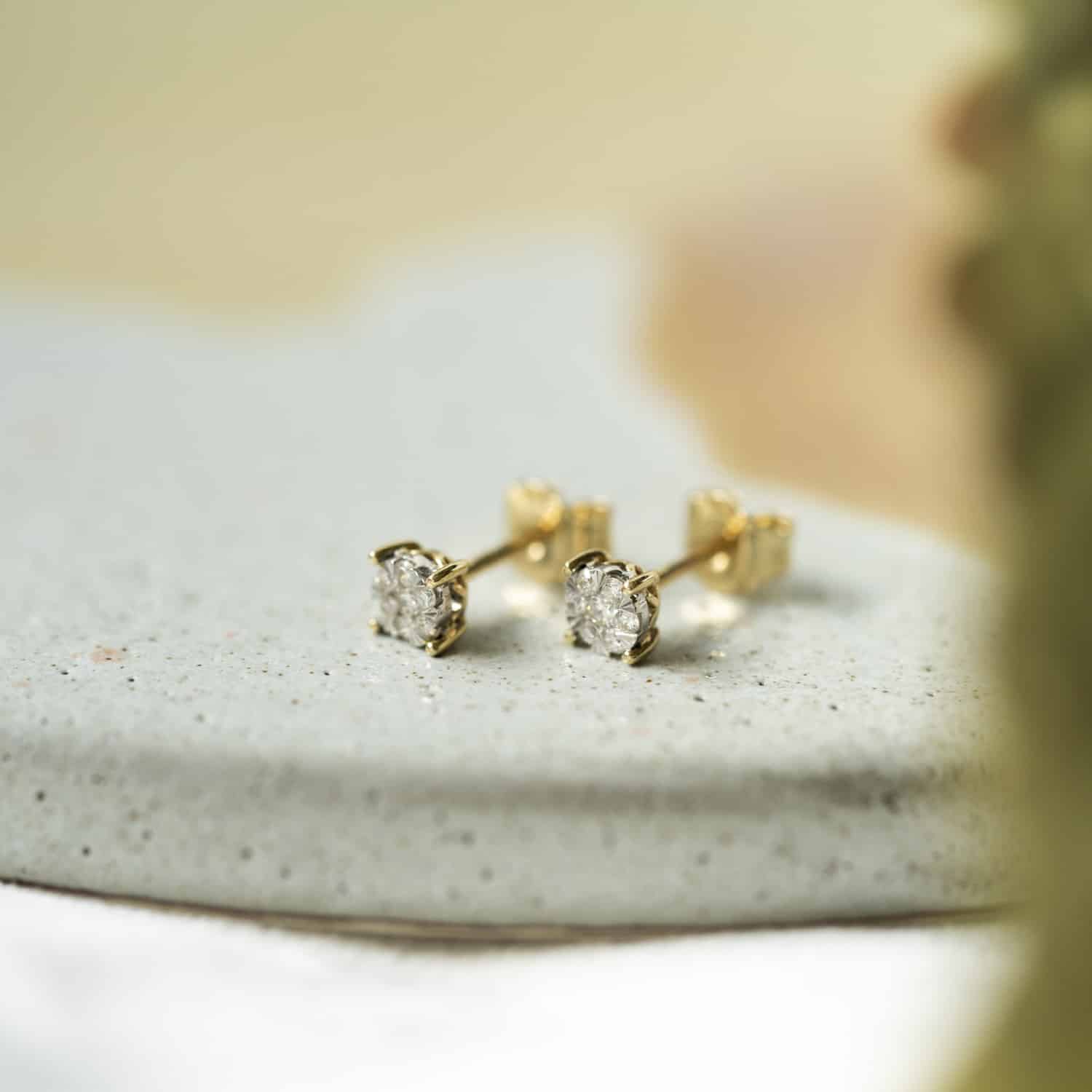 Øredobber i gull diamanter 0,13ct WSI
