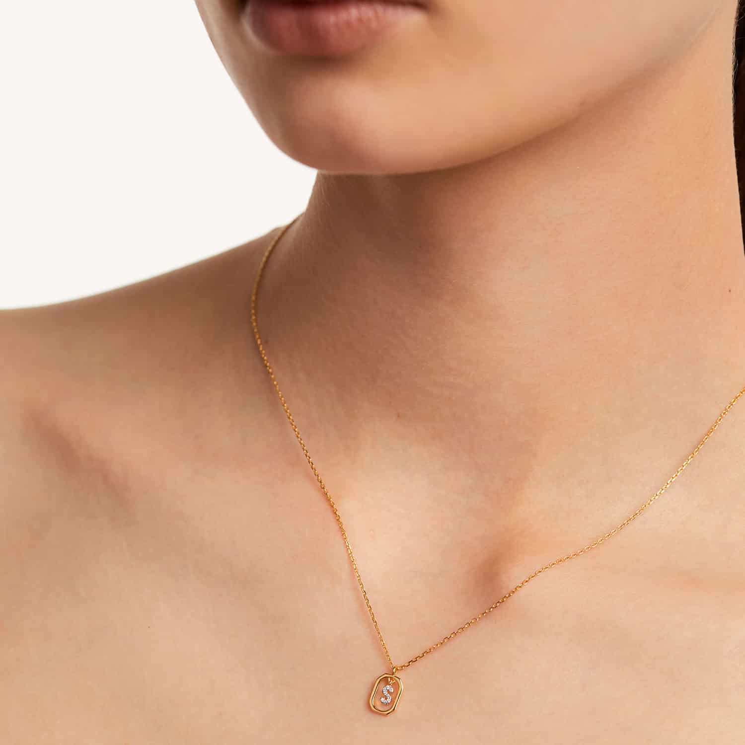 Laget av 18k gullbelagt sterlingsølv, bokstavenes unikhet ligger i deres detaljerte håndverk: zirkonia av førsteklasses kvalitet satt i rhodiumbelagte utstikkere for et utseende med ensartet glans.