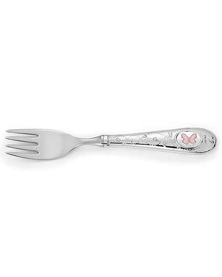 Gaffel i stål med motiv i sølv og ekte emalje.