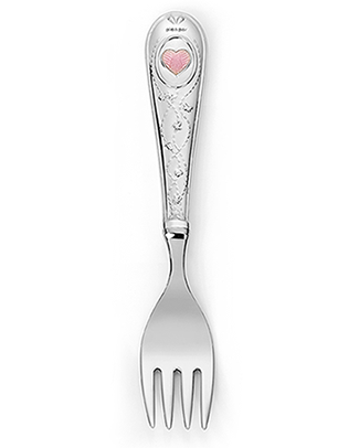 Skje i stål med motiv i sølv og ekte emalje.
