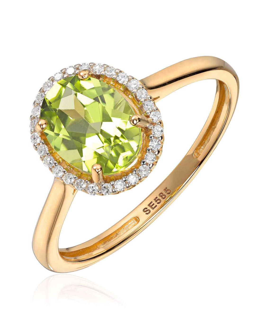 Ring i gull med diamant og peridot