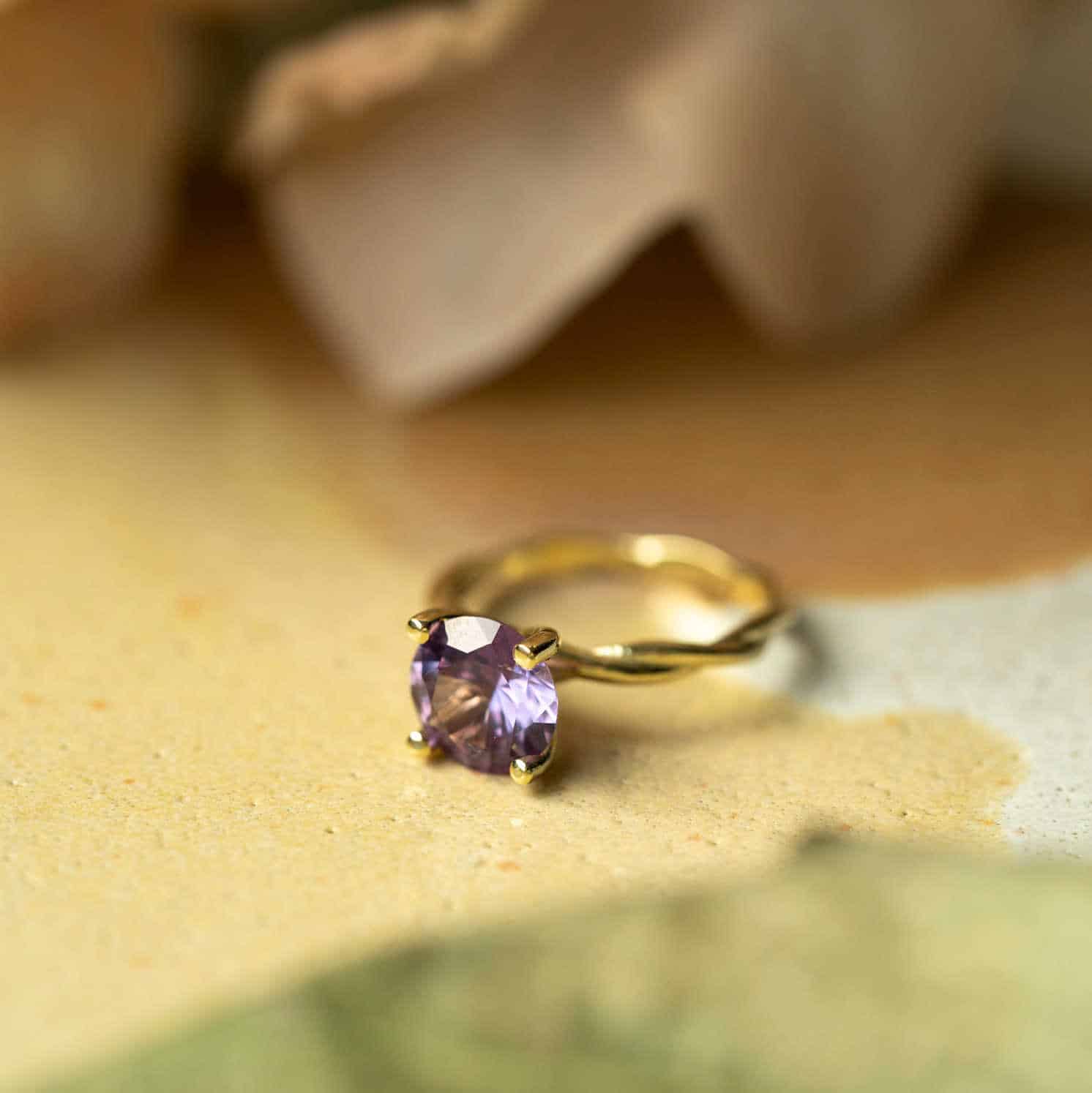 Ring i gull med syntetisk alexandritt