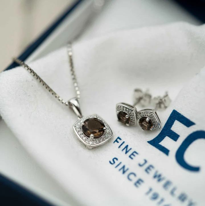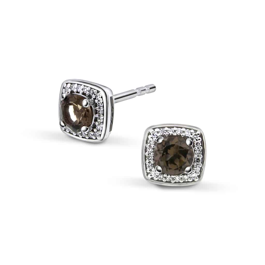 Øredobber i hvitt gull med diamant og røkkvarts 0,06 ct WSI