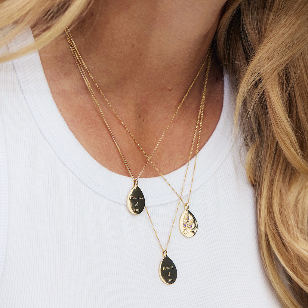 Denne amuletten bærer ordene «Fuck flink» – en kraftfull påminnelse om at du ikke trenger å være perfekt for å være verdifull. Den handler om å gi slipp på prestasjonspresset og gi deg selv rom til å senke skuldrene, puste ut og være akkurat den du er. Uperfekt, ekte og mer enn god nok. Tre små ametyster er lagt inn i en detaljert lyngblomst. Ametysten sies å gi ro og klarhet i sinnet, mens lyngen står som et symbol på styrke og skjønnhet – selv i motvind. Et smykke for deg som er klar for å gi litt mer faen, og samtidig stå stødigere i deg selv.