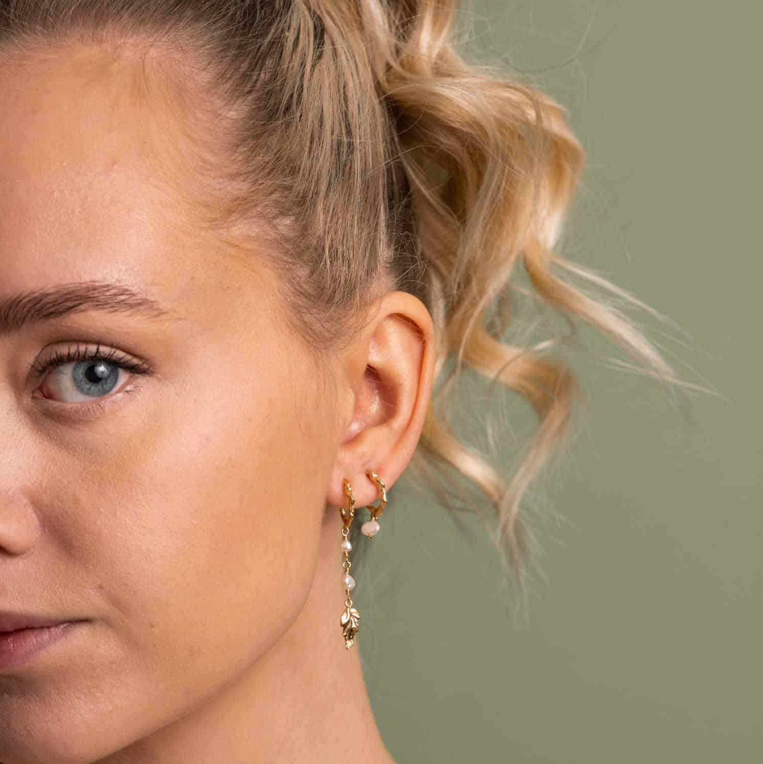 Trendy øredobber med strukturert overflate og en vakker liten keshi barokkperle. Finnes også i 2 lengre varianter.