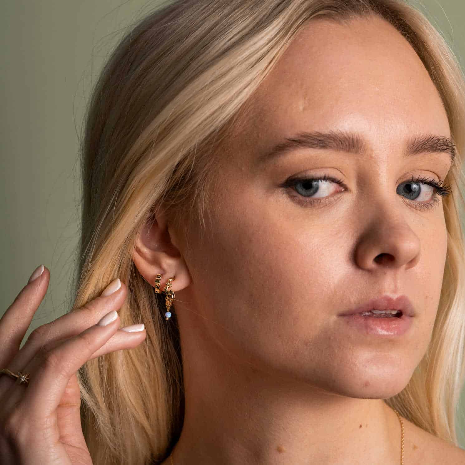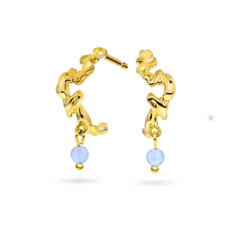 Nydelige øreringer med organisk form og skinnende blå opal. Finnes også med zirkonia.