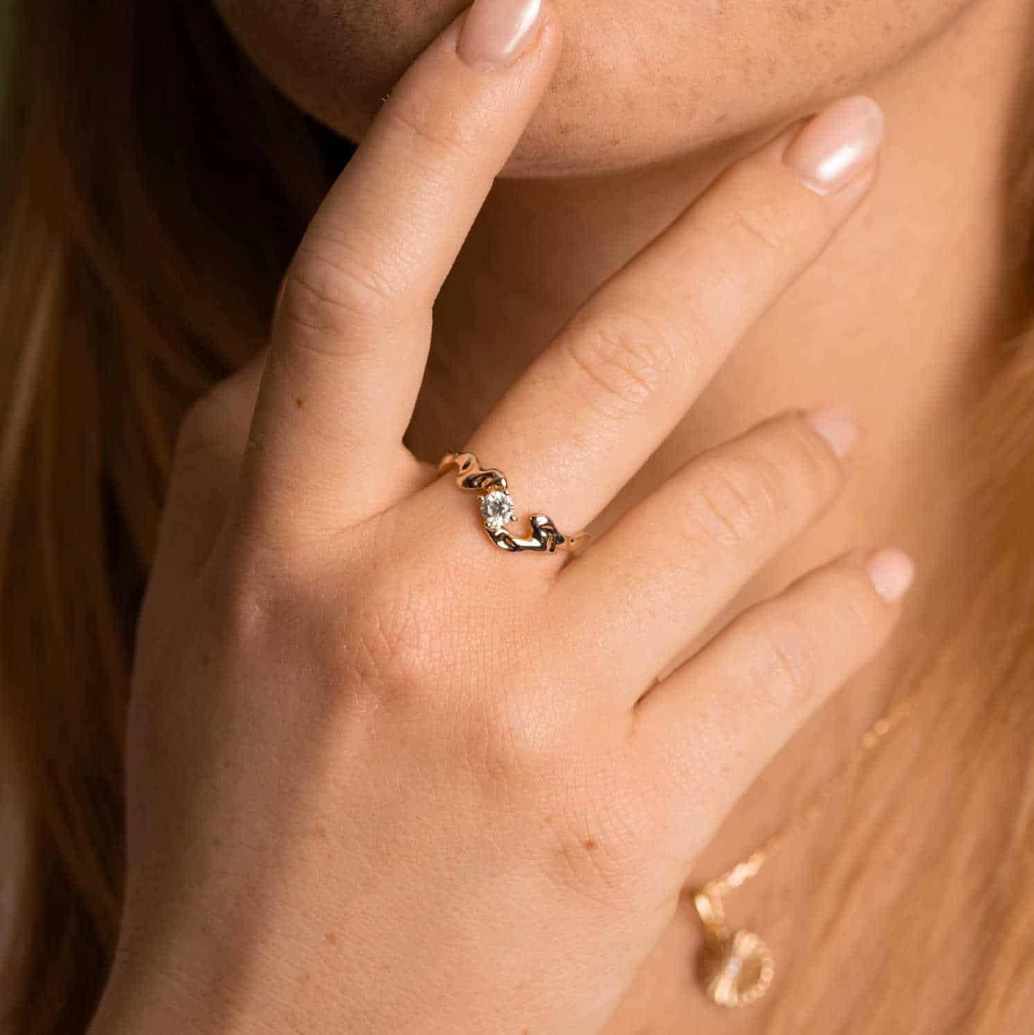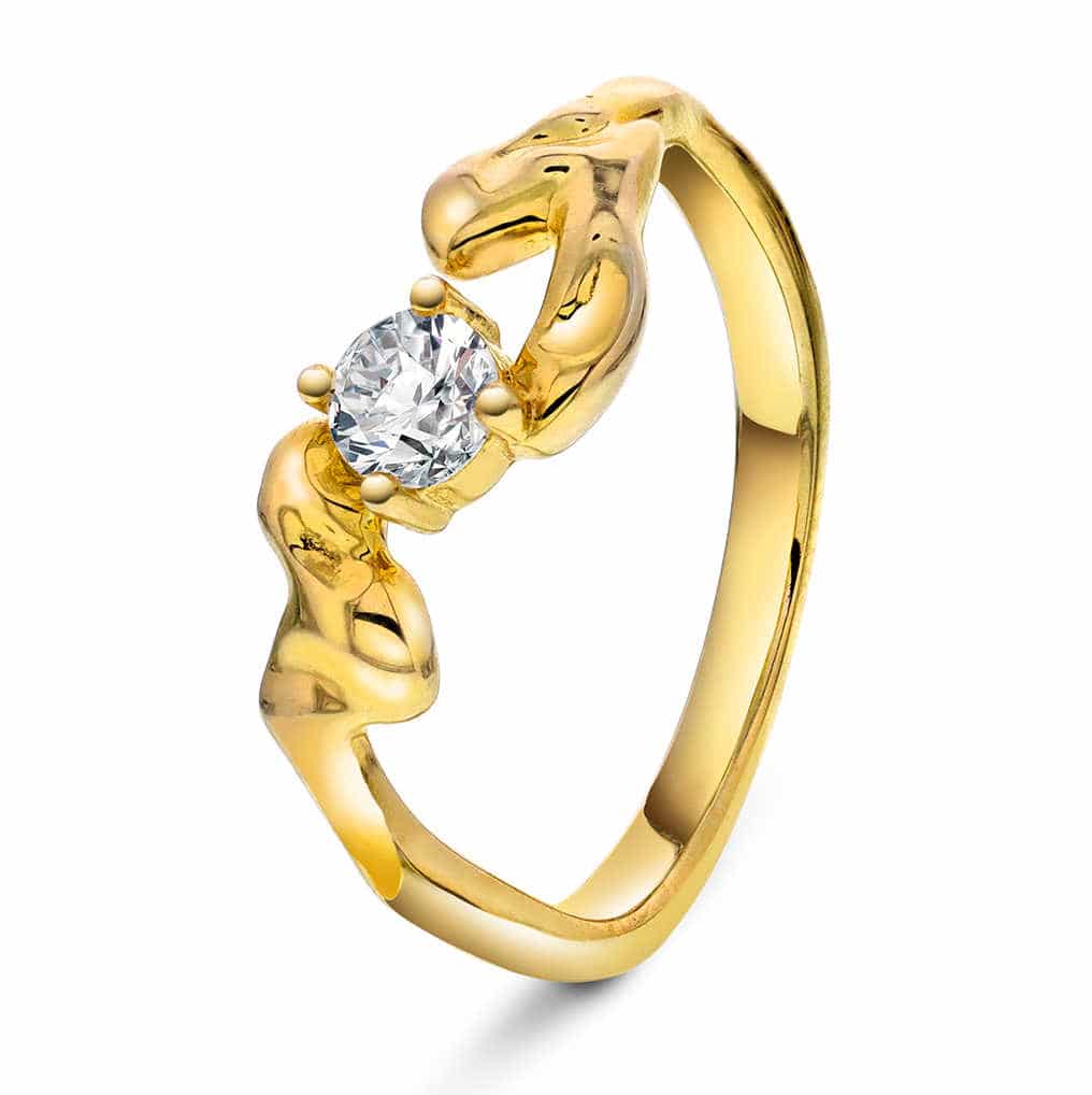 Nydelig ring med organisk form og skinnende blank zirkonia. Finnes også i matchende øredobber.
