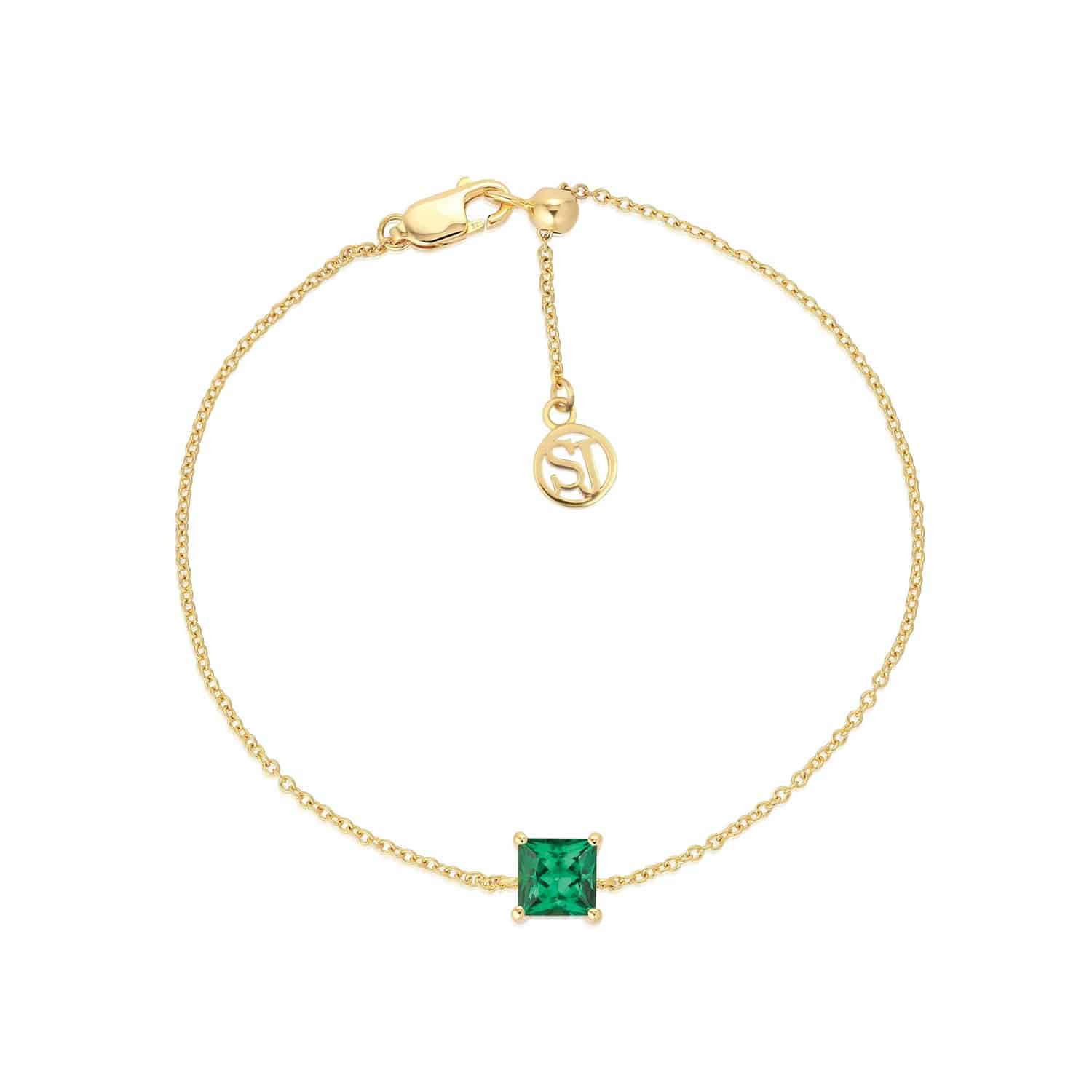 Sif Jakobs Bracelet Ellera Quadrato – 18k Gold Plated, With Green Zirconia