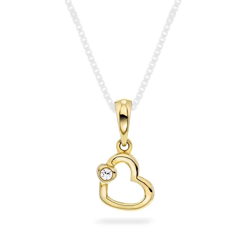 Smykke i gull med zirkonia hjerte