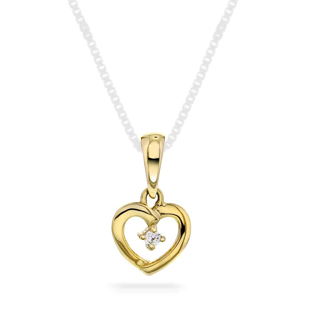 Smykke i gull med zirkonia hjerte