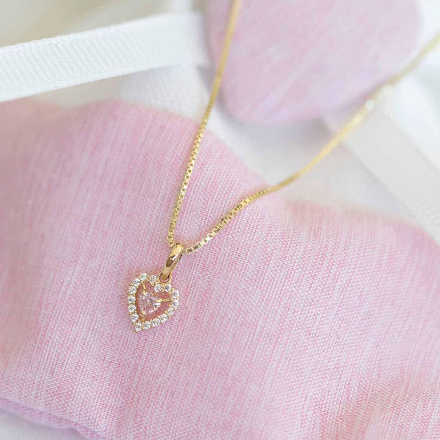 Smykke i gull med zirkonia hjerte