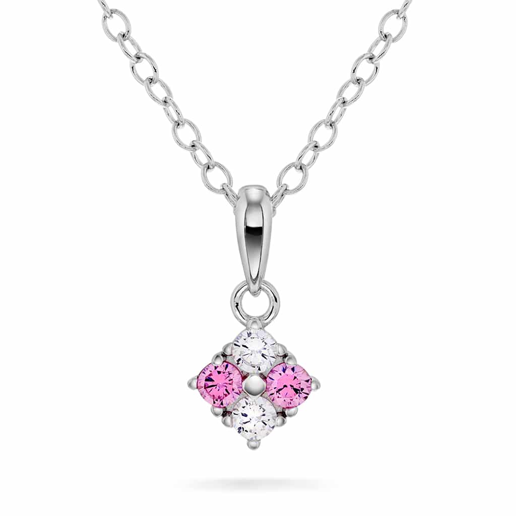 Smykke i sølv med hvit og rosa zirkonia