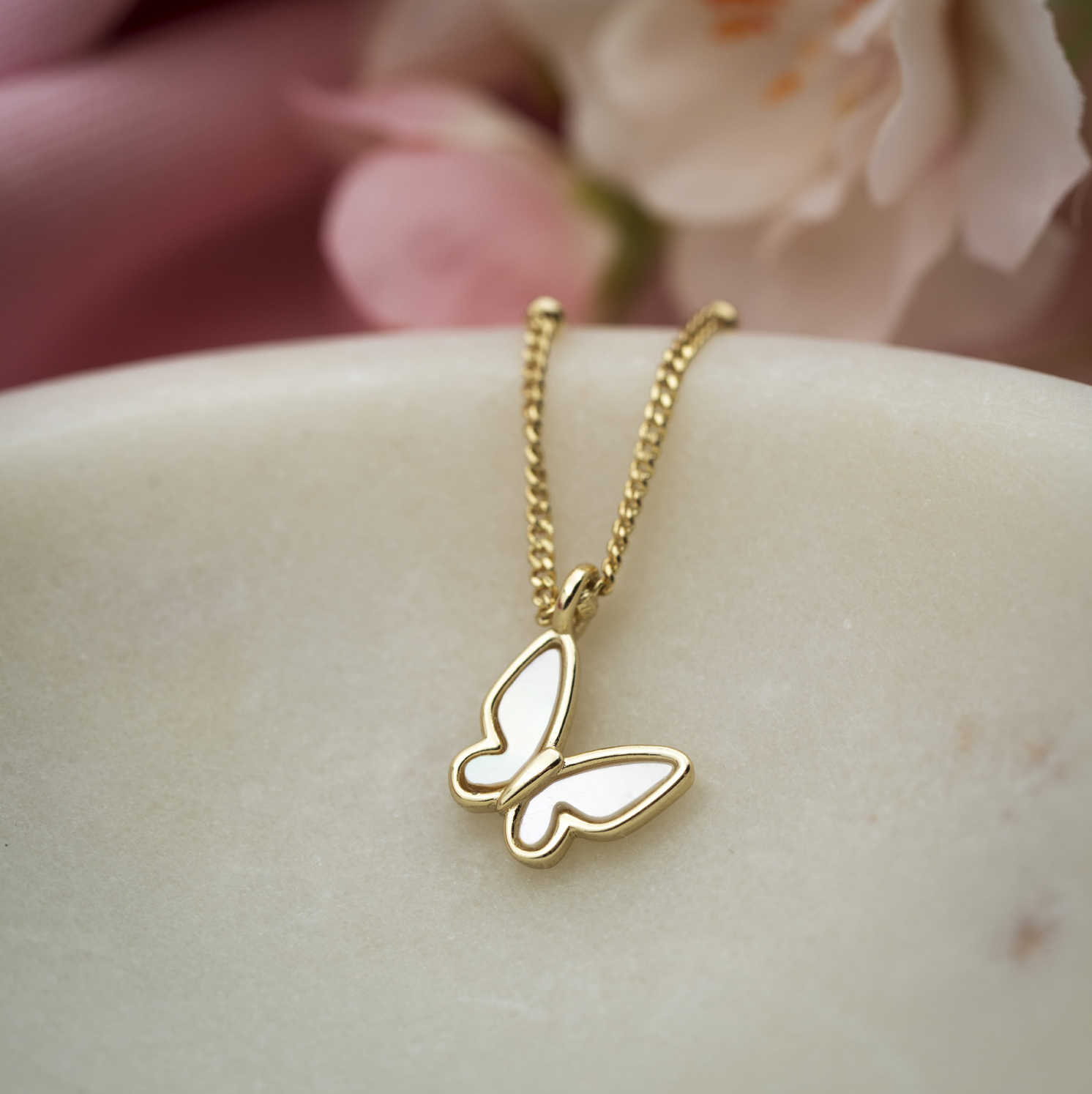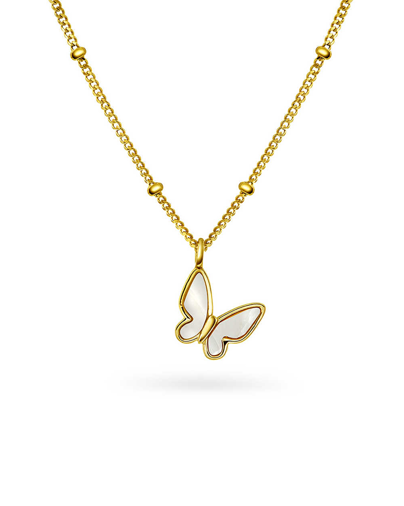 Smykke i sølv med perlemor sommerfugl