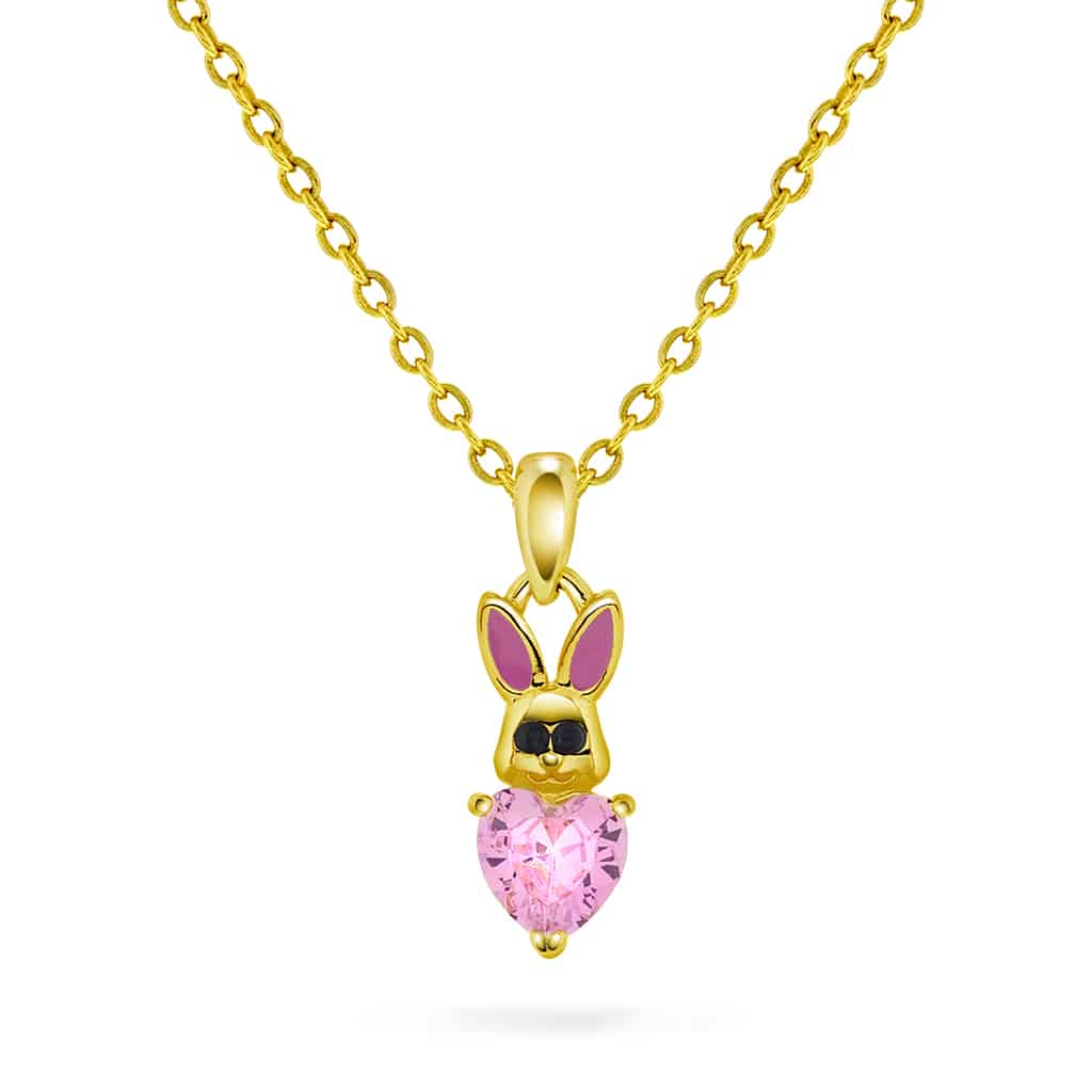 Smykke i sølv med rosa zirkonia kanin