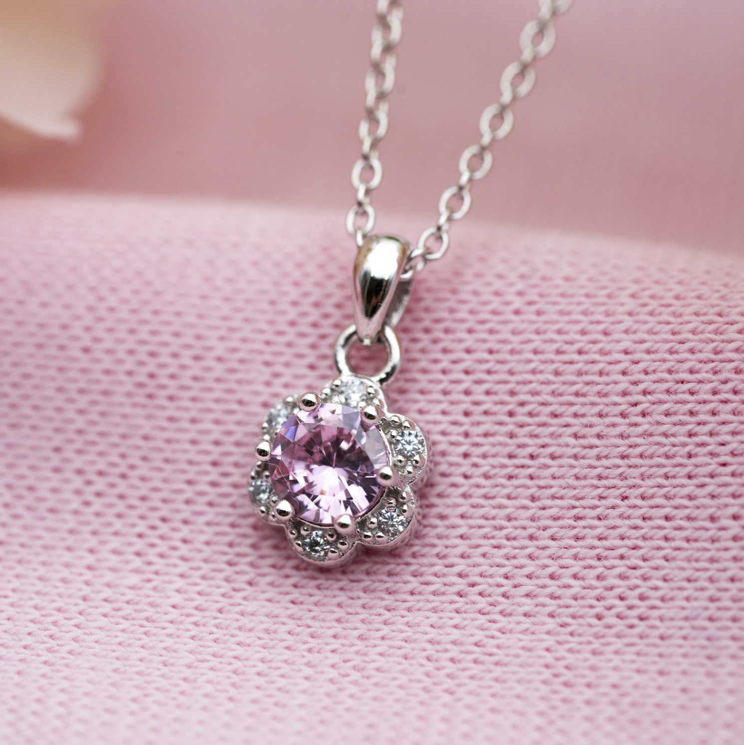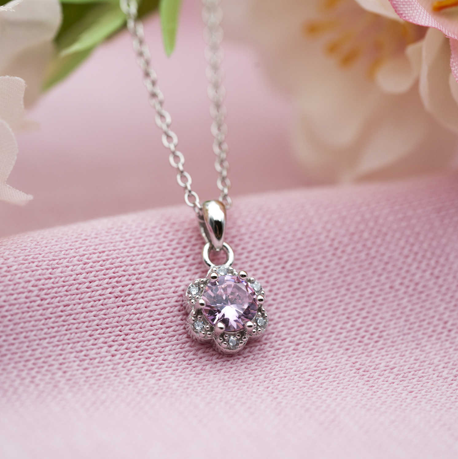 Smykke i sølv med zirkonia blomst