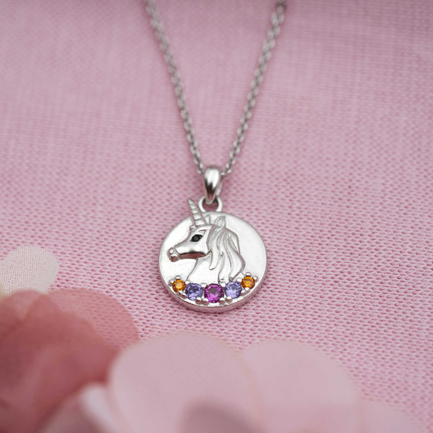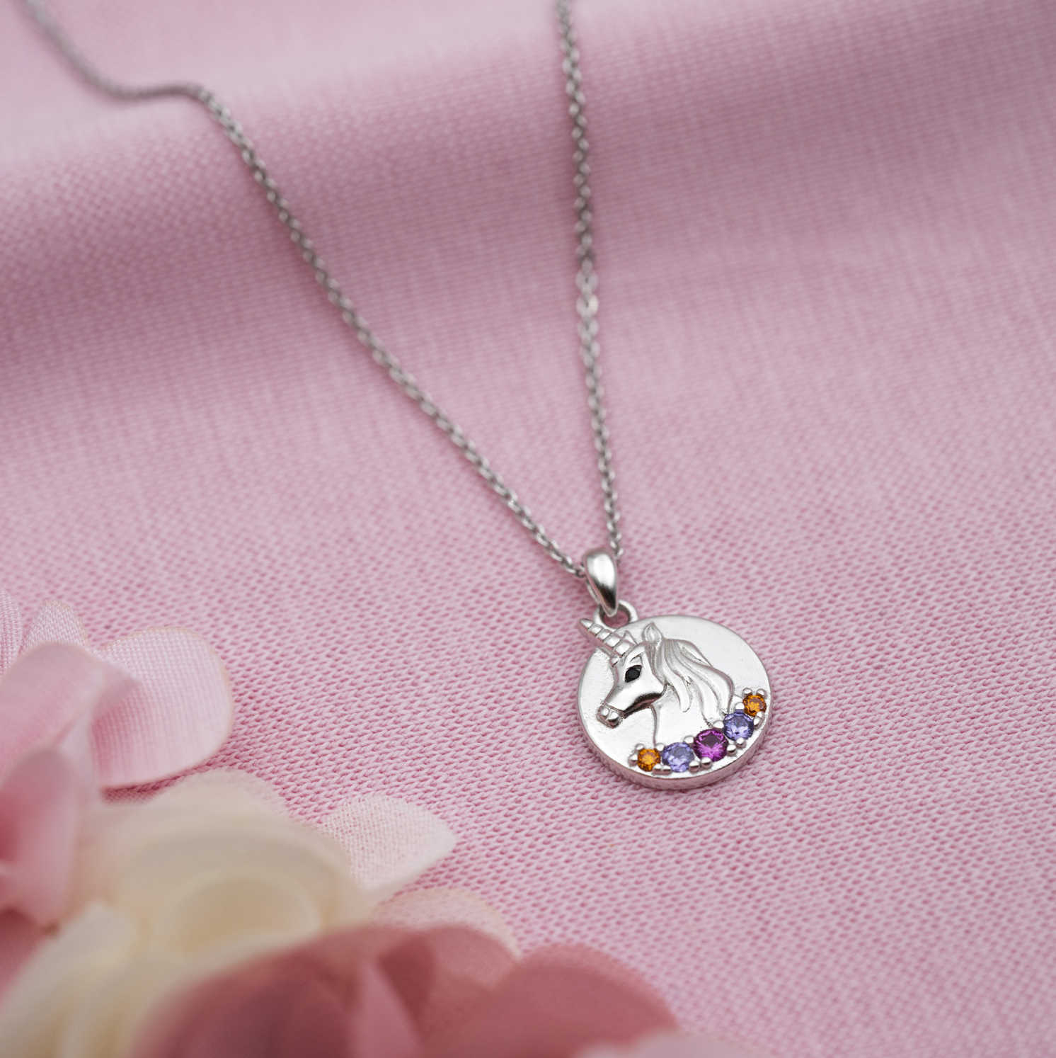 Smykke i sølv med zirkonia unicorn