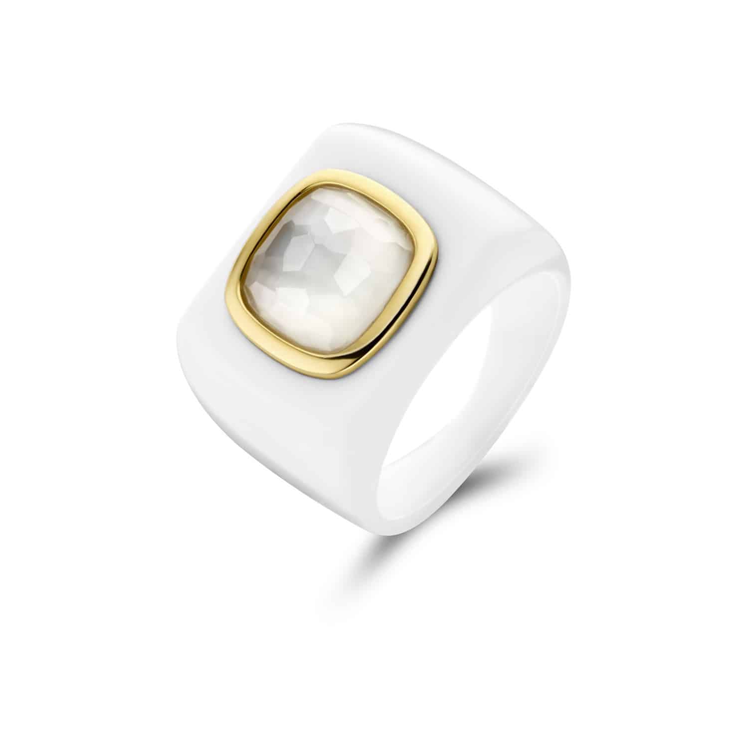 Ti Sento – Milano gold-plated silver ring 12255WA with white agate stone and mother of pearl centre stone