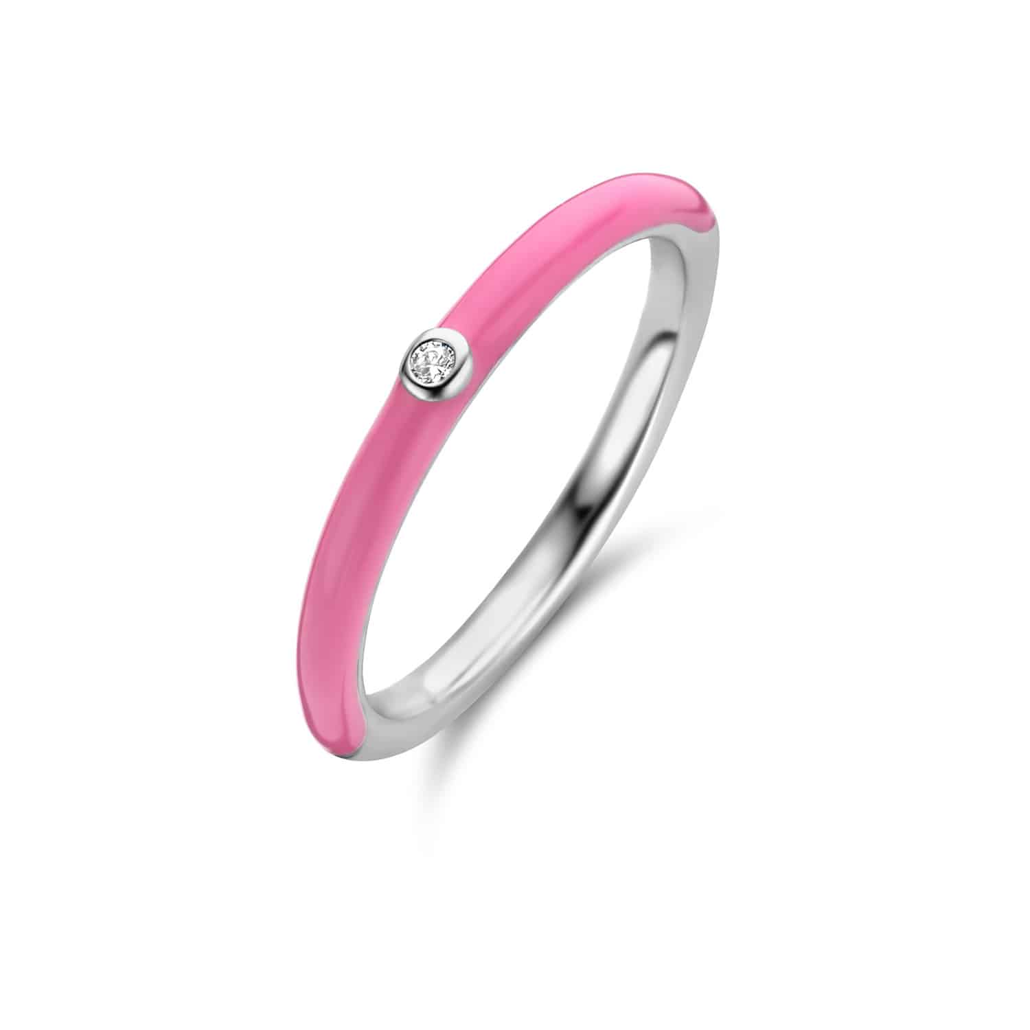 Ti Sento – Milano Ring with Enamelled Pink Fuchsia